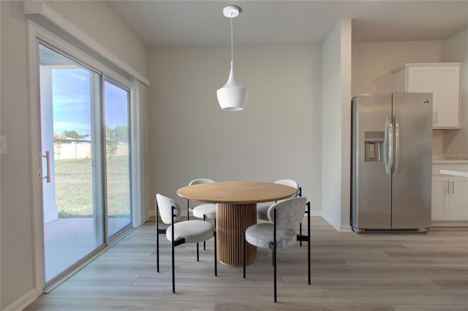 Step inside to an open-concept layout featuring luxury vinyl plank flooring, solid-surface countertops, custom cabinetry, and blinds throughout. The spacious kitchen flows effortlessly into the main living area, ideal for entertaining or comfortable everyday living. Separate laundry room with washer and dryer included.