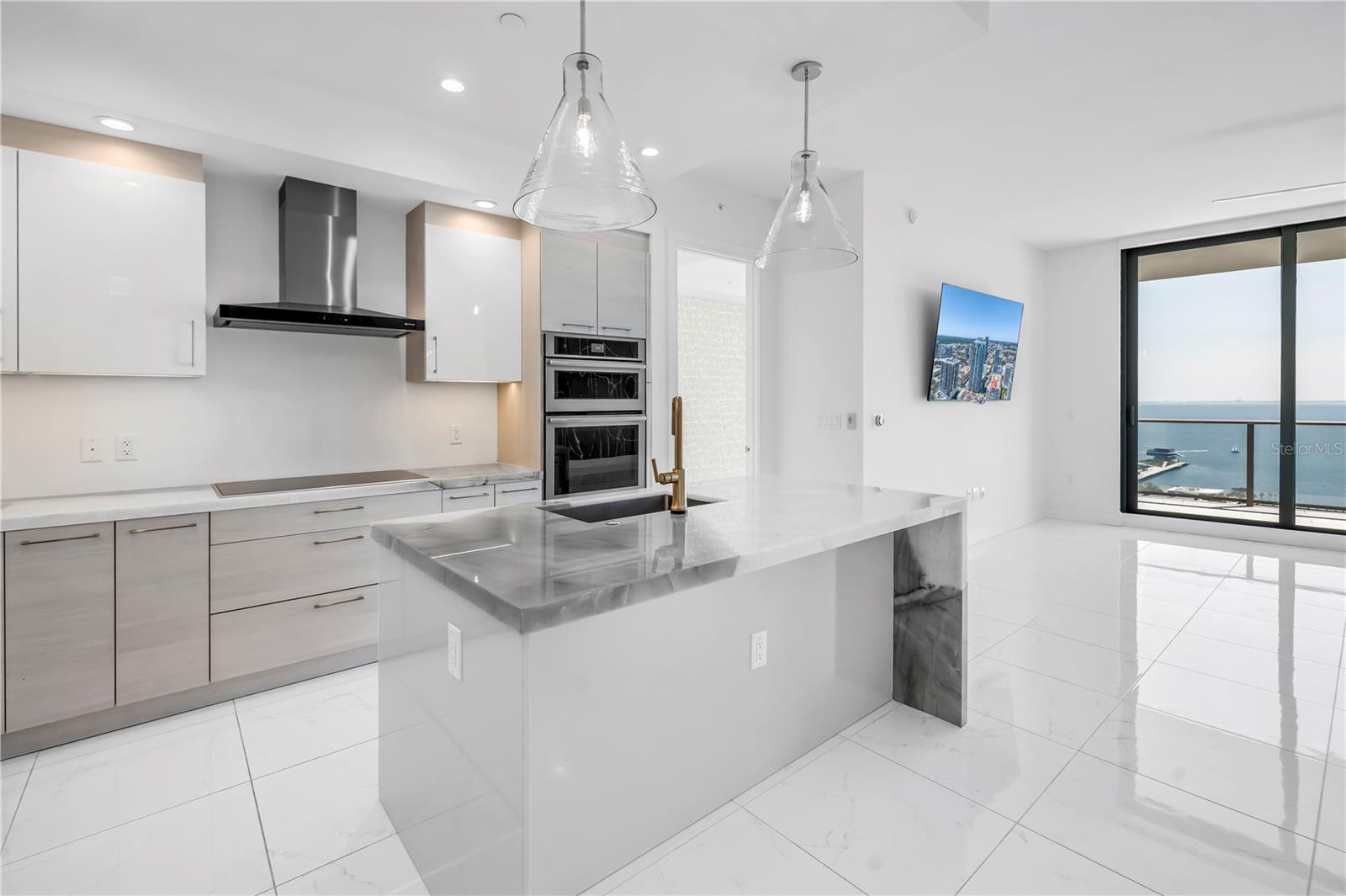 Designed for both relaxation and entertaining, this 2-bedroom, 2.5-bath condo features a large multipurpose den, soaring 10-foot ceilings and an open-concept layout that flows effortlessly from space to space. The chef’s kitchen is a true showpiece, complete with high-end stainless steel appliances, flat-surface cooktop with hood, double built-in ovens, an oversized center island, and ample custom cabinetry; all finished with elegant European touches and quartz countertops.