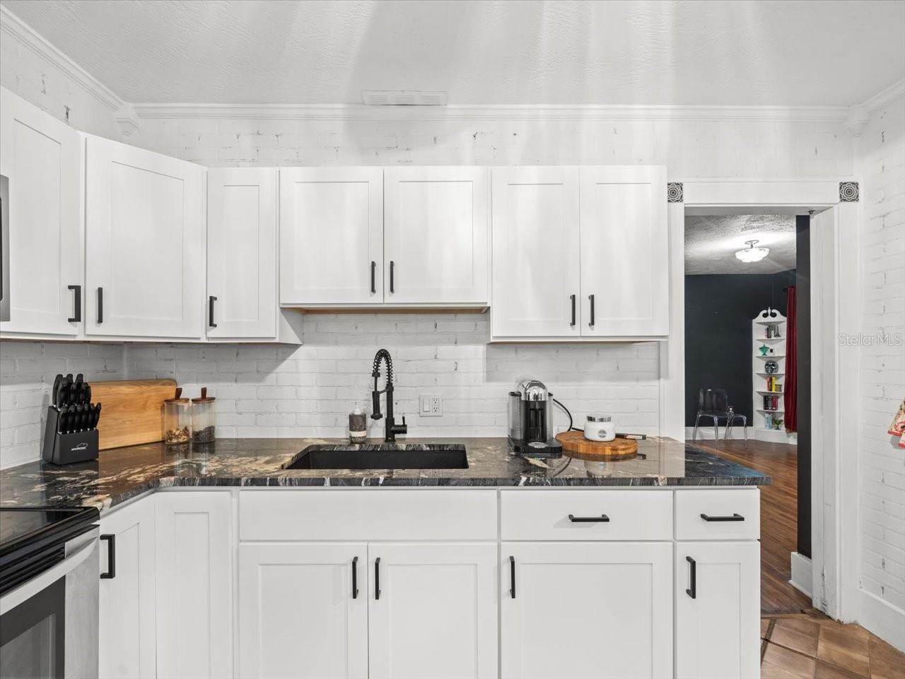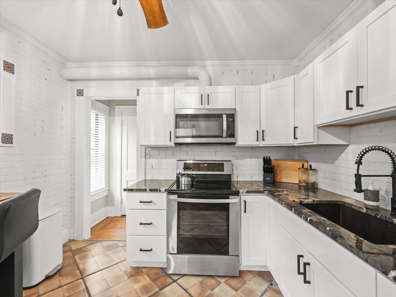 There is a stunning formal dining room showcasing bay windows and a storage closet leading you into the BRAND NEW KITCHEN that was completely remodeled in July 2025. Here, you'll love the updated plumbing, luxury granite countertop, soft close shaker cabinets made of wood-not particle board, a dishwasher hook up, and brand new ventilation system. The laundry area has a BRAND NEW washer/dryer as well as a BRAND NEW 50-gallon water heater.