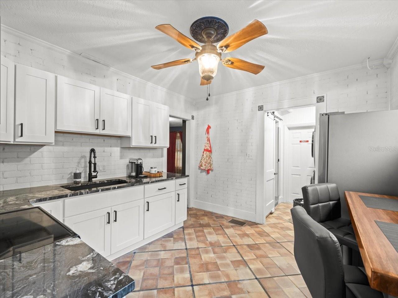 The downstairs bathroom is a completely updated tile bathroom with shower.