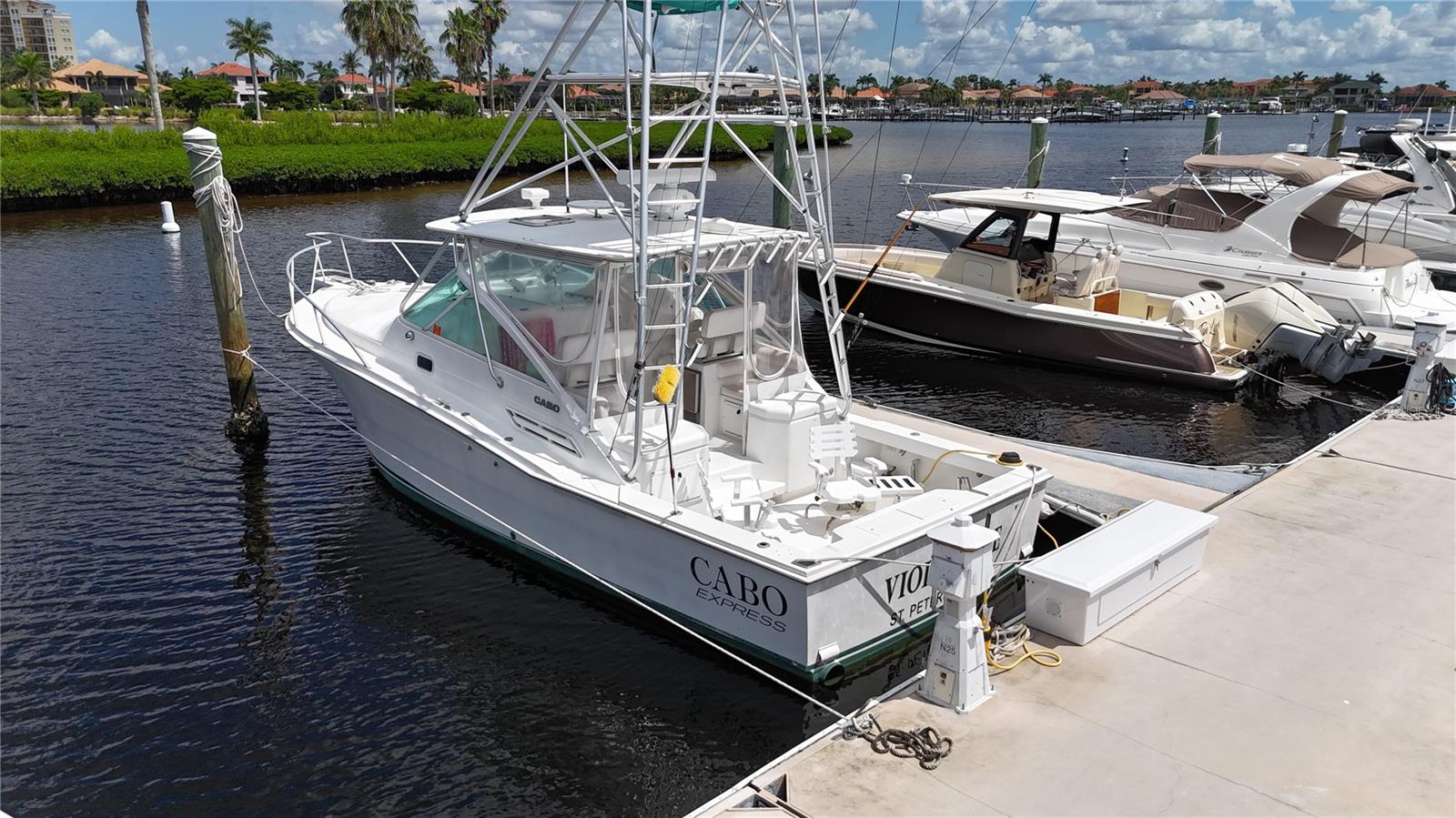 This floating dock slip measures 35' x 13.6', accommodates vessels up to 35 feet in length, and offers 50 amp shore power, pump-out at each slip, and Wi-Fi. Owners enjoy full access to the marina's resort-style amenities, including gated parking, 2 floating heated pools, pet walking area, social docks with 3 grills, laundry facilities, private bathrooms and showers, and on-site fuel dock.