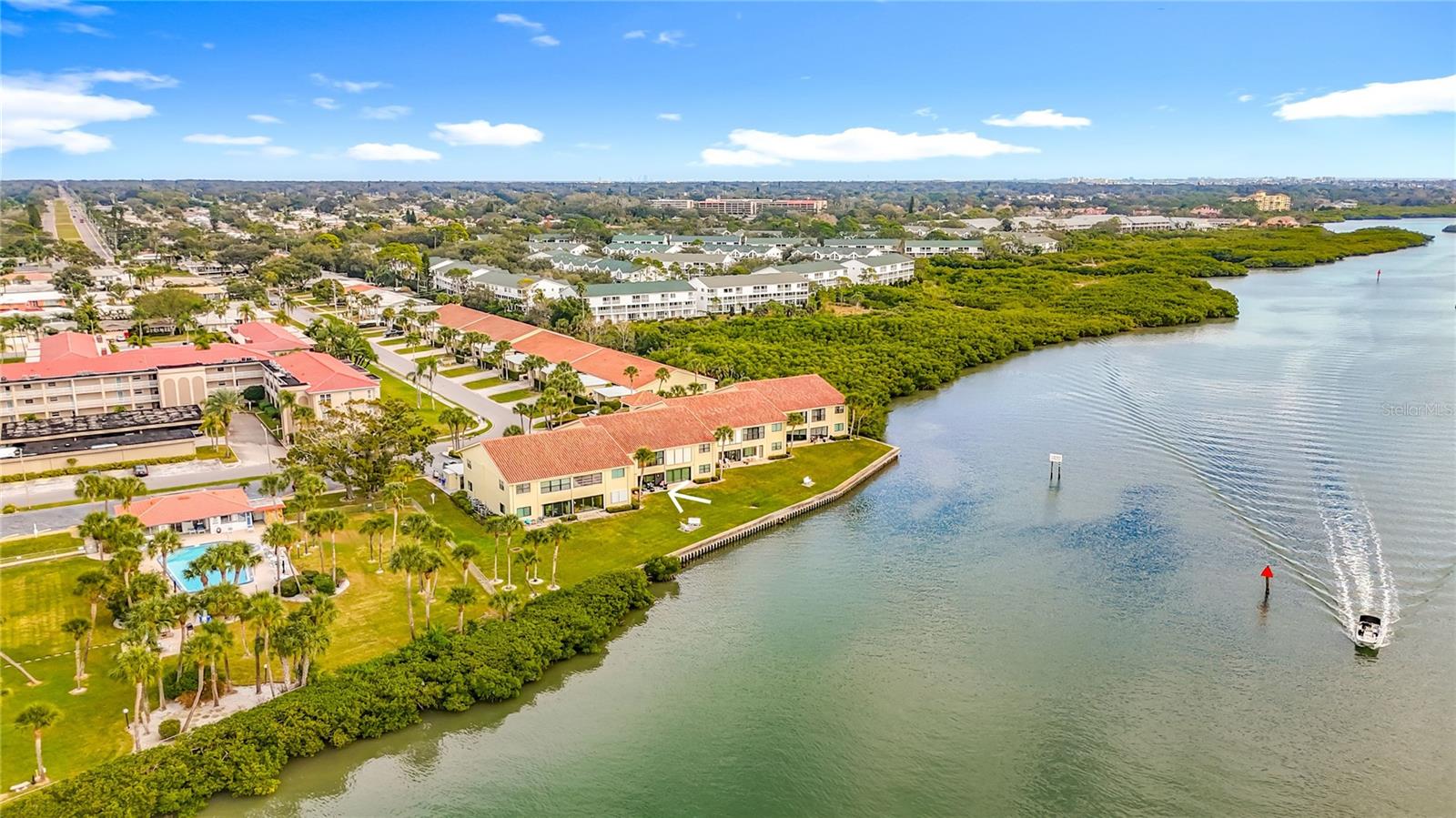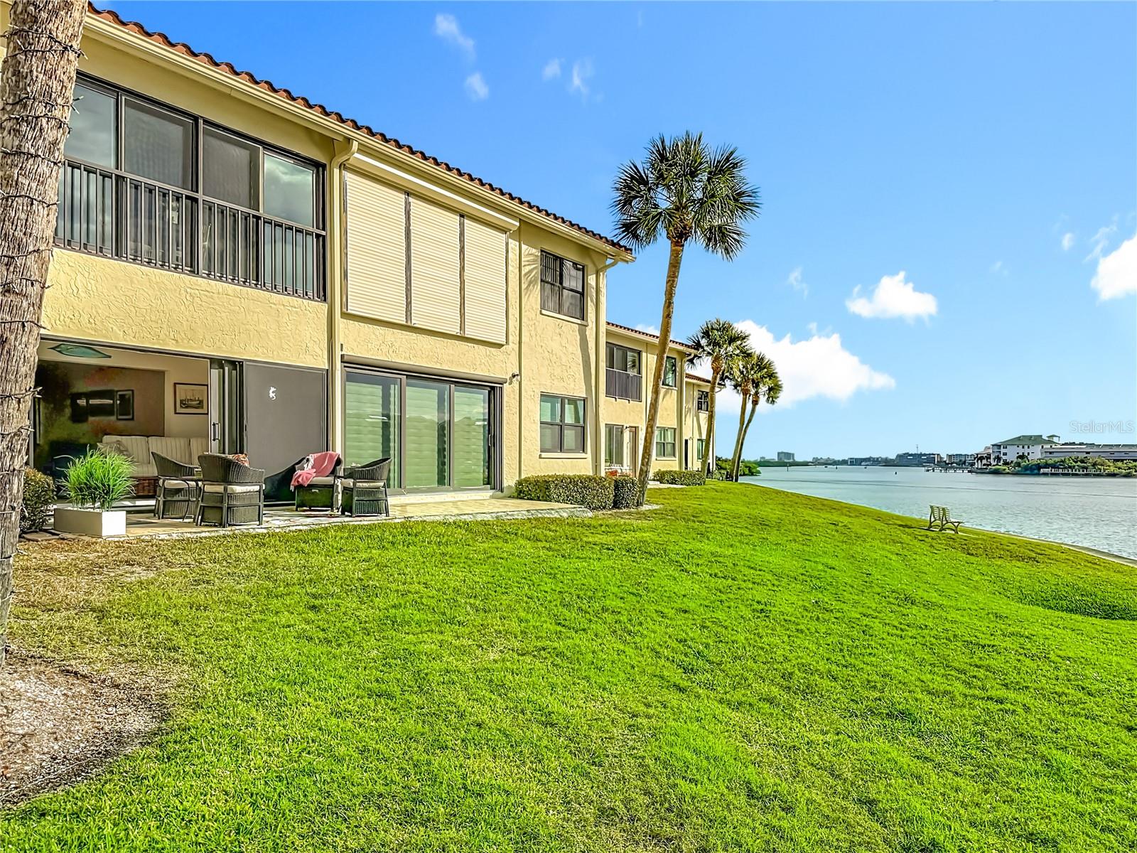 Welcome to your own Waterfront Paradise! This charming first-floor condo is designed for those who crave coastal comfort and convenience, offering direct access to the Intracoastal Waterway just steps outside of your back door. Rarely available, this residence is located in a small, two-story condo building—ideal for those seeking privacy, limited neighbors, a quiet coastal setting, and ample guest parking. The open floor plan features two bedrooms and two full baths, with a picturesque waterfront setting and a private back patio overlooking the water. Inside, the spacious living and dining area is thoughtfully designed for both comfort and entertaining. The updated kitchen showcases solid wood cabinetry, granite countertops, and a charming wine and bistro nook near the patio—perfect for morning coffee or evening relaxation. The open-concept layout seamlessly connects the kitchen and living space, offering flexibility for gatherings of any size. The generously sized primary suite offers two large closets, including a walk-in, and an en suite bathroom. Enjoy tranquil views of sailboats gliding by on the Intracoastal from your bedroom. A split-bedroom floor plan provides privacy, with a spacious secondary bedroom and adjacent full bath—ideal for guests. Additional highlights include an oversized in-unit laundry room, a designated covered carport, and additional storage conveniently located just outside the front door—adding everyday ease and practicality. A bright Florida room provides the perfect space to unwind while watching boats, dolphins, and glowing sunset skies over the water. Step outside to your private back patio, which serves as your personal waterfront retreat—ideal for relaxing, entertaining, or simply soaking in the peaceful surroundings. This home offers peace of mind with an elevated grade of over 8 feet (X500 flood zone) and no history of storm impact. At 1,400 square feet, this bright and contemporary condo is located in the prestigious, resort-style community of Imperial Point. Residents enjoy access to two pools, including a private condo clubhouse and pool for condo residents only. Just a short walk away are Imperial Point’s additional amenities, including a heated and cooled pool, picnic and barbecue areas, 24-hour fitness center, community clubhouse, game and billiards rooms, pickleball, bocce, shuffleboard, and 24-hour access to a fishing dock and boat ramp—all overlooking the Intracoastal Waterway. Recent updates include new tile flooring throughout, a new AC system and hot water heater (2025), hurricane-rated dual-pane slider doors and windows, updated lighting, and solid wood interior doors. Monthly association fees cover all amenities, internet, cable, Wi-Fi, water, sewer, trash, exterior maintenance, landscaping, and pool maintenance. Ideally located just minutes from Gulf beaches, shopping, dining, and local airports, this exceptional waterfront home offers a rare opportunity to enjoy Intracoastal living at its finest. Offered fully furnished if desired—so you can move right in and start living the coastal dream.