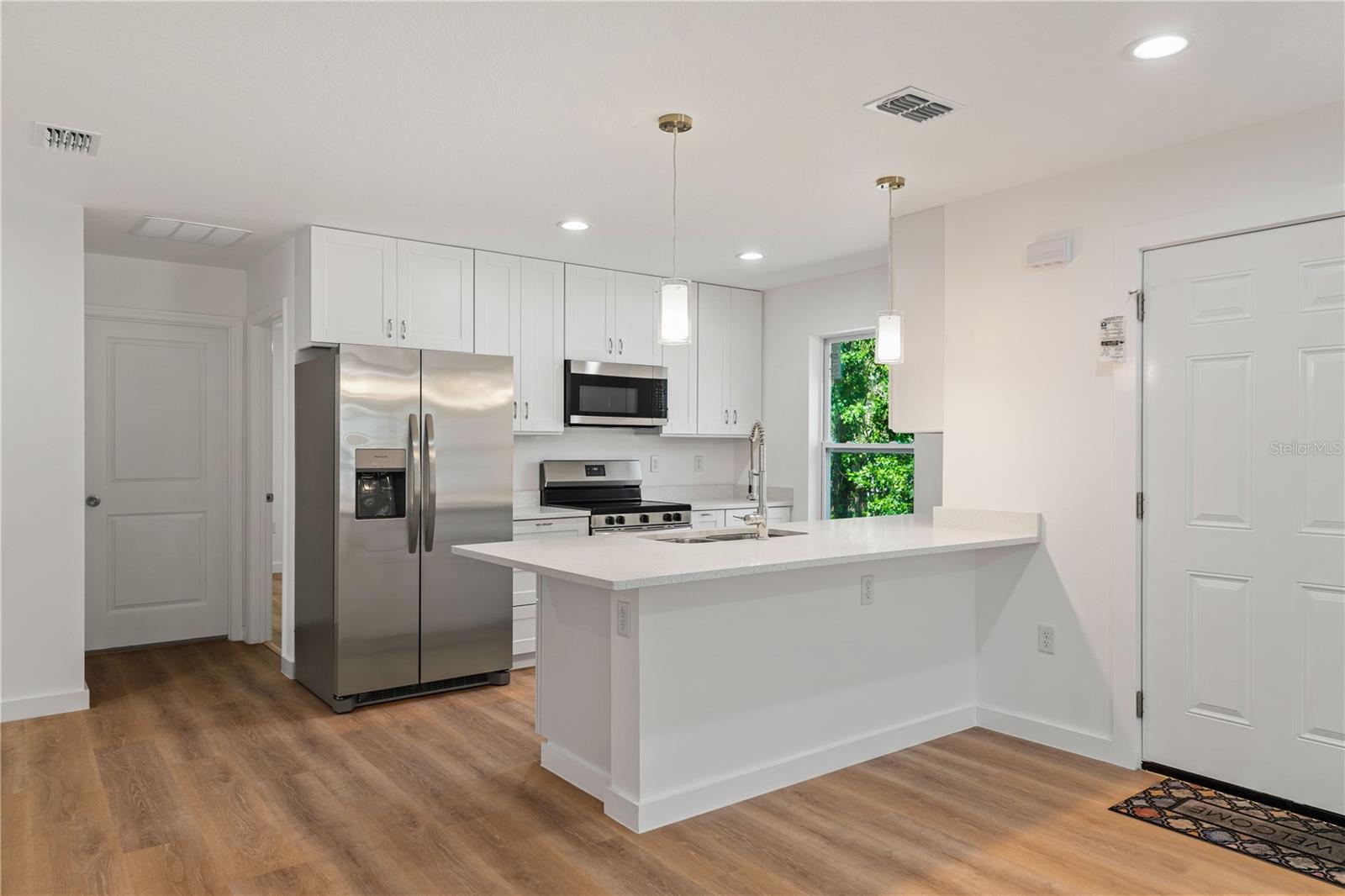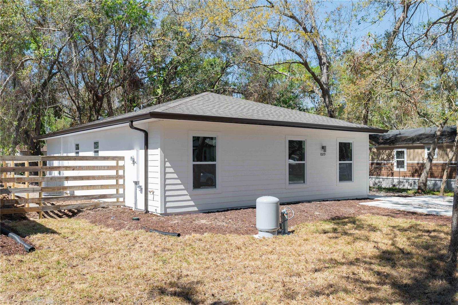 One or more photo(s) has been virtually staged. REDUCED AND OFFERED AT ITS MOST COMPETITIVE PRICE BY THE BUILDER. Affordable new construction home! FULLY completed and ready for its first residents. Investors: potential rental income for this home is approximately $2,050/month. Buyers: Limited opportunity to keep costs down, making your mortgage cheaper than renting long term. As with all new construction homes, the home insurance premium is much lower than older homes. With a brand-new private well system, you'll also have no water/sewer bills, and being out of a high-risk flood zone, flood insurance is NOT required! No HOA here either, allowing you to maximize your property at your leisure. This builder prioritizes energy efficiency by using superior insulation, low-E windows, recessed LED lighting and ceiling fans which enhance comfort throughout. Two exterior 110-V soffit outlets for easy installation of security cameras. Offering 3 bedrooms, 2 bathrooms, and a thoughtfully designed open layout. Enjoy peace of mind with impact-resistant windows and exterior doors rated for hurricane-force winds, and 160-mph shingles, while the luxury vinyl plank flooring, premium quartz countertops, and contemporary bathroom tile add a touch of elegance. The kitchen comes fully equipped with new stainless steel appliances, shaker cabinets with soft-close hinges, and undermount sink for easy clean up. The private laundry room includes a new stackable washer and dryer combo, plus a cabinet for storage and added convenience. Plus, a builder’s warranty is included which provides peace of mind, making this home the perfect blend of style, durability, and savings! The company that installed the brand new septic system includes 2 years of free maintenance. Minutes from the home is beautiful Moon Lake Park where families can enjoy access to the lake with a boat ramp, for boating, kayaking or canoeing. There are also picnic tables, BBQ grills, basketball hoop, playgrounds, and bathrooms available.