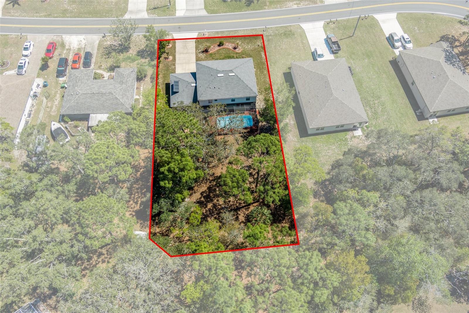 Proud to Present this 3 bedroom, 3 (2/1) bath two story POOl home settled nicely on a half acre lot! This home has 2,356 Sq Ft of living space which includes a large flex room that can be used as an office, den, or additional bedroom. No HOA or CDD! As you pull up to the home you'll see the nice curb appeal and front yard along with the decently sized and level drive way that leads to the 2 car garage. The interior of the Home has plenty of extras as well! The kitchen has updates that include marble counters, and a wood block island. There is a large electric fire place in the family room as well. The back yard is amazing with generous views from the screened in lanai and in-ground POOL, also with a JACUZZI that both look over the beautiful and spacious fenced in back yard. This home also includes a newer and clean SHED in the back yard with electric already set up. The major updates have been taken care of as well with a newer HVAC unit, roof, and SOLAR HOT WATER HEATER This Home has a lot to provide to its new owner so check out the video link and schedule a showing today !