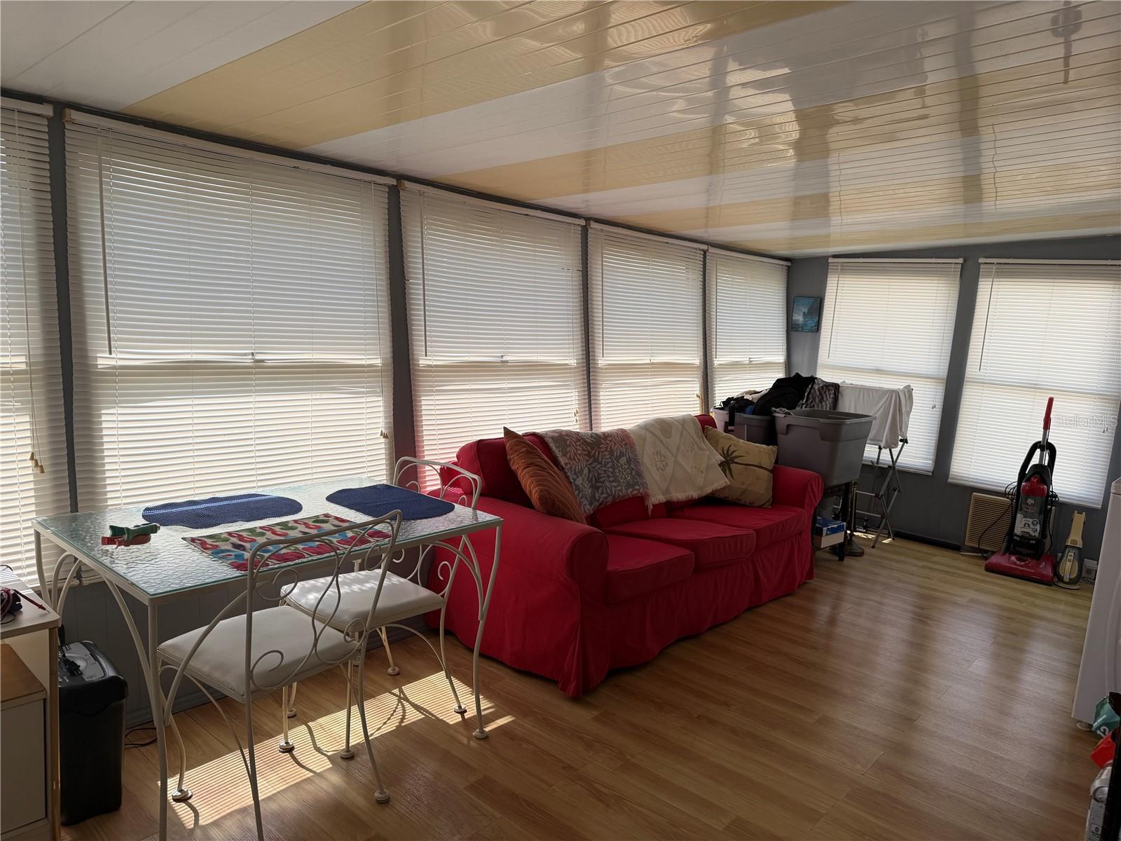 Fractional Ownership. This beautifully furnished mobile home 1bedroom one bath, can be your home away from home, live here year-round or come for the winter!! This home offers a beautiful kitchen, a very large bonus room, a laundry room in the home, and laminate flooring throughout except carpet in the bedroom. Appliances included are refrigerator, stove, microwave, washer, and dryer. Celilin fans in the kitchen, living room, and bedroom. Storage shed, wood deck, AC in the Living room, bedroom, and the bonus room/lanai. Furnished home, the sale also includes the Weber BBQ, the two cayaks ( with paddles, PFD), and one mountain bike! GOLDEN ACRES is located 3 miles east of the Gulf of Mexico in Dunedin, Florida, and .8 of a mile from the inter-coastal waterway. Golden Acres occupies 23.38 acres of prime property off of Main Street and Patricia Avenue with 224 mobile units. Resident-owned park, meaning that when you purchase a share, you own 1/224 of the park. You are part of a co-operative, with each owner having their own equal share of the park. The purchase price includes the share ($23,800) plus the cost of the coach. A Monthly Maintenance FEE of $218 covers other costs and amenities. Facilities include an outdoor heated pool, a recently renovated clubhouse with wireless, shuffleboard courts, a wood-hobby shop, a billiard room, and laundry facilities. An active, 55-plus, no-pet community offers a full range of recreational activities. Exercise classes, potluck dinners, cookouts, outings, golf courses nearby, and a full calendar of events are planned by the Recreation Committee.