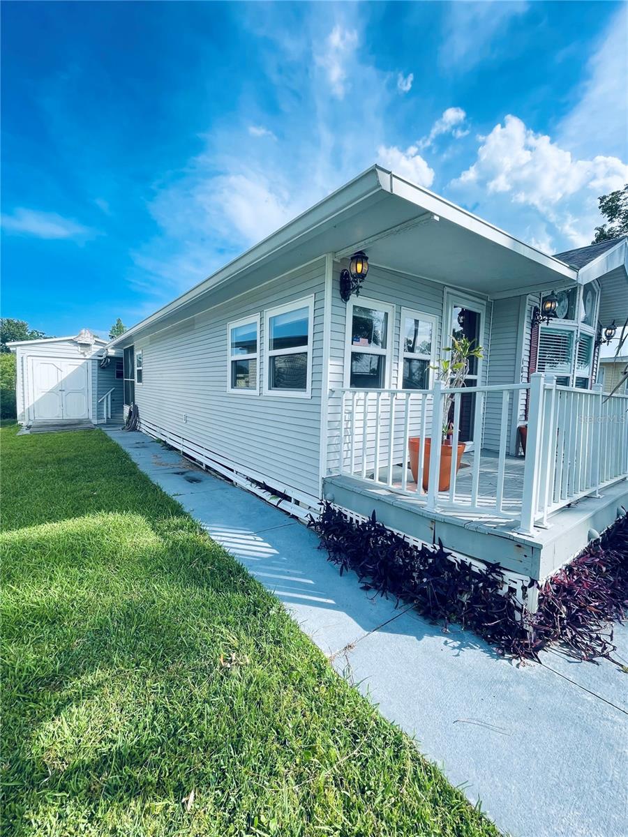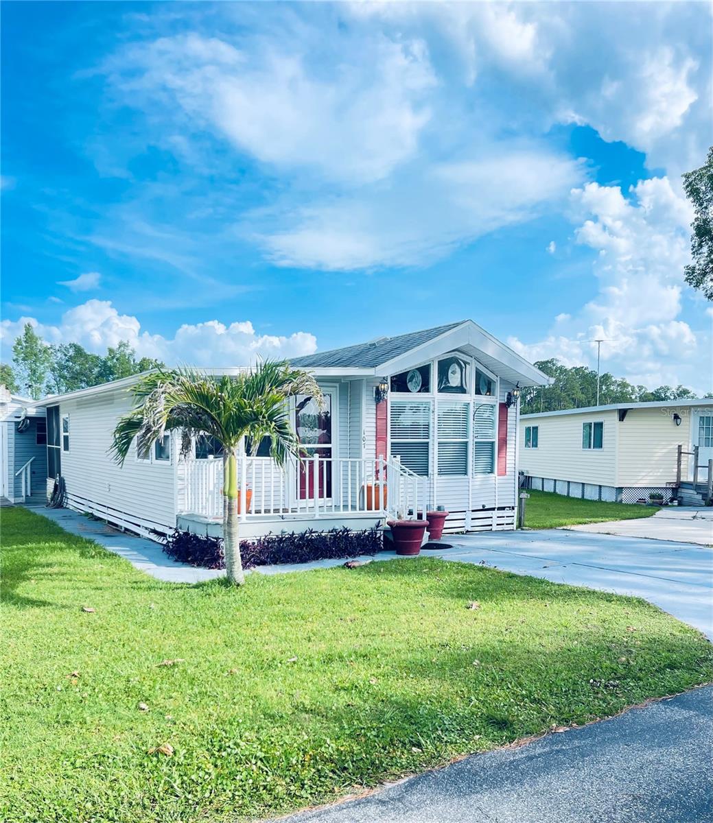 RETIRE WITH CONFIDENCE. HOA is LOW and includes Water/Sewer/Trash Pickup. Kove Estate is a 55+ Co-Op community, a friendly active environment offering resort-style living in a gated Golf community. There is no lot rent, as a share in the community conveys with the sale. The monthly cooperative fee (HOA) $219. This home features 1 bedroom, 1 bathroom, a spacious Kitchen Dining combination. Large Family Room with views of the water. Primary Bedroom with Built in Closet Storage for all your Golf Attire. Relax on your Very Large Screened in porch with 90* views of the Lake. This home also has laundry hookups and an attached oversized Shed. As a resident of Kove Estate, you will enjoy free 9-hole golf, two pools (one heated), tennis courts, pickleball, community events, Clubhouse, Library, and Gated security. The community is conveniently located off SR415, minutes to Sanford, Deltona, New Smyrna Beach, close to shopping, dining, medical facilities, and attractions such as the Daytona International Speedway, the Kennedy Space Center, and the Orlando theme parks. This home is a cash-only deal and a must-see for anyone looking for a peaceful and convenient lifestyle. Water, Sewer and Trash pickup is included in the LOW HOA. Call today to view!