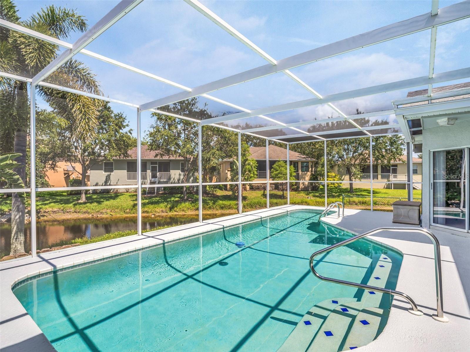 You home. As you enter, 10’ ceilings enhance the open and inviting living and dining room that look out over the fully screened pool, lanai, and Serene Pond views beyond. Gorgeous kitchen with stainless appliances, granite countertops, built in pantries, and an island that is open to the cozy family room with a fireplace and breakfast nook that looks over the lanai and pool. A split floor plan provides optimal privacy with two bedrooms and one bath on one side and a spacious master suite on the opposite side of the home. You will love all the extras, such as a built in vacuum system, laundry chute from master bath, built in ironing station in the laundry room, tankless hot water heater, water softener, gas stove and fireplace, two car garage, laundry sink in garage ,and wall to wall built in cabinetry in one of the bedrooms, including a Murphy bed and built in desk. Four sets of sliding doors provide views and access to the covered lanai and pool, There’s a gas hook-up on the lanai for outdoor grilling and dining poolside. This home has not flooded and sits high and dry. Pointe Alexis is a beautifully maintained. Pointe Alexis South offers a gorgeous clubhouse, Olympic size heated pool land jacuzzi, pickle and tennis courts, small fitness gym, billiard room, Shuffleboard, and Ping-Pong. HOA fees include house water, landscape water, cable, internet, garbage, landscaping, and sprinkler maintenance. This is truly resort style living. You don’t want to miss this one! - Virtual Tour: https://www.propertypanorama.com/instaview/stellar/TB8463362