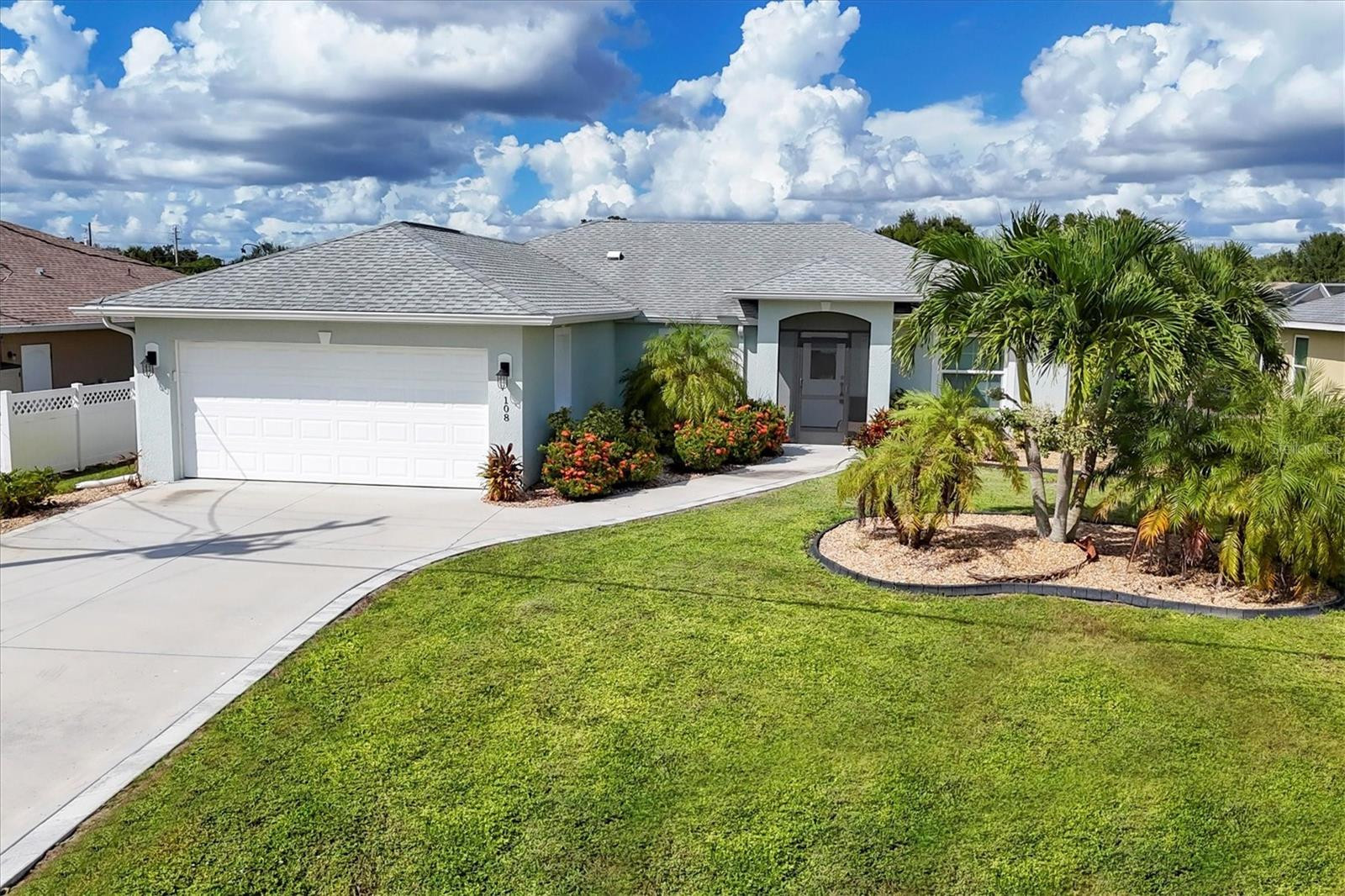 This is a must see home! Stunning 3 Bedroom / 2 Bathroom WATERFRONT POOL HOME on the Butterford Waterway! Welcome to this meticulously maintained home. THIS HOME SHOWS LIKE A MODEL HOME! Step inside to find an open-concept floor plan with bright, airy living spaces, contemporary finishes and tile flooring throughout. The home features a spacious kitchen, stainless steel appliances, granite countertops, and plenty of storage. The split-bedroom floor plan creates privacy, with a luxurious primary suite and walk-in closets. Additional features of the home include; an irrigation system, hurricane impact windows, an electrical panel that is hardwired for a generator, an expanded driveway, an extended garage for oversized vehicles, oversized lanai, and a firepit/patio area. Enjoy relaxing or entertaining in your newly built screened in heated saltwater pool (2023). The tranquil backyard is surrounded by tropical landscaping, offers waterfront views where you can kayak and fish, watch sunsets and admire Florida wildlife. Whether you're looking for a full-time residence or a seasonal getaway this home is move-in ready and shows like new. The home is located in Rotonda Lakes. The annual HOA fees ($135) are used to maintain the Rotonda Lakes community park, their new pavilion and planned social gatherings hosted throughout the year. Rotonda West’s community also includes a county park with a playground, tennis/pickleball courts and a beautiful trail system for biking and hiking. For the avid golfer, there are 5 golf courses in the area. All courses are open to the public and memberships are optional. The Gulf of Mexico, public beaches and Manasota Key are just 15 minutes away. Don’t miss this opportunity to own a slice of paradise on Florida’s Gulf Coast! FURNITURE CAN STAY, INQUIRE. Call to schedule a private showing. Present all offers!!!