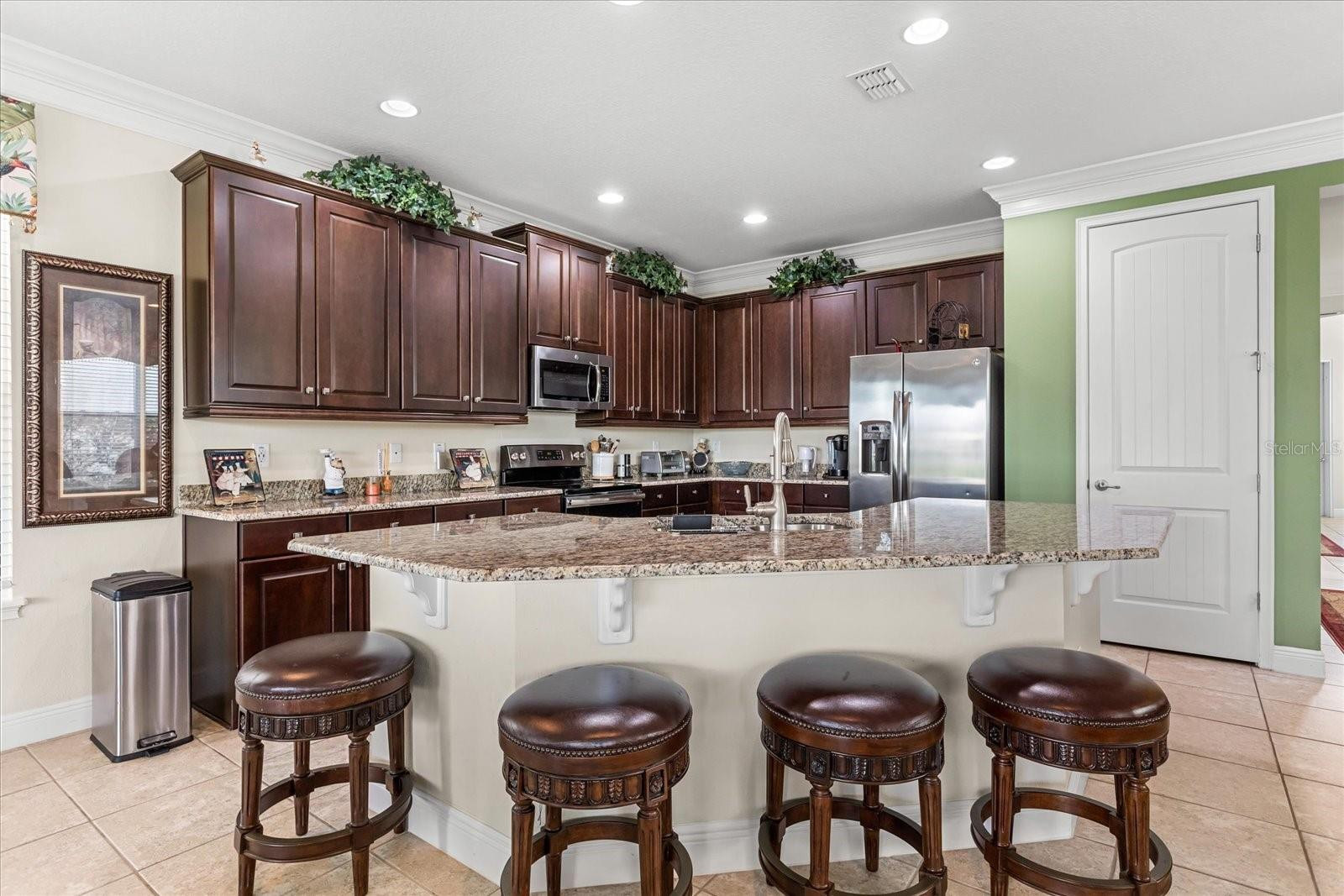 Pristine 5-Bedroom, 5.5-Bath Home boasting 3,328 Sq. Ft. of refined living space and is located along Hole #6 of the Signature Jack Nicklaus Course. The home has been meticulously maintained and has served exclusively as a second home. NEVER RENTED! As you step inside, you're welcomed by a first-floor primary suite, complete with a luxurious en-suite bath featuring a garden tub, separate walk-in shower, stone countertops, and custom hardwood cabinetry. The open-concept main living area offers seamless flow and sophistication, highlighted by custom built-in shelving. The spacious island kitchen is equipped with stainless steel appliances, stone countertops, and hardwood cabinets with crown molding. The oversized island provides additional seating, ideal for entertaining friends and family. A formal dining area sits conveniently adjacent to the kitchen, along with a stylish half bath for guests. Upstairs, you'll find a second spacious living area, perfect for gatherings or relaxing evenings. The second primary suite is located at the rear of the home, offering access to a private balcony with panoramic golf course views and an overlook of the spectacular pool deck below. The en-suite bathroom mirrors the luxurious finishes found downstairs—garden tub, walk-in shower, hardwood cabinetry, and stone counters. Two additional en-suite guest bedrooms are located just off the upstairs living area, providing privacy and comfort for family and guests. The fifth bedroom, positioned at the front of the home, includes access to its own private balcony and offers versatile space suitable for a seating area or home office. Step outside to your private resort-style pool deck, featuring a covered lanai, large pool, jacuzzi, and an elevated sun deck—perfect for soaking up the Florida sunshine and enjoying the serene golf course setting. Reunion Resort is a one of a kind 2300 acre Resort and Golf community that has many amenities including a water park complete with water slides, lazy river, zero entry pools & food and beverage service, 3 award-winning golf courses designed by the legends of golf (Palmer, Watson & Nicklaus), 11 pools throughout the community, putt putt golf, world class tennis courts, pickleball courts, playgrounds, golf cart & bike rentals and several on-site restaurants to include fine dining. Reunion Resort is located just 6 miles to Disney and the parks, and a short drive to the Orlando International Airport. **REUNION RESORT MEMBERSHIP AVAILABLE*** and is transferrable to the next owner.