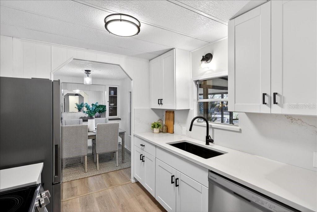 Inside, modern updates meet everyday comfort. The seller has thoughtfully renovated the kitchen with NEW CABINETRY, QUARTZ countertops, STAINLESS steel appliances, and an updated sink and faucet, creating a bright and functional space at the center of the home. LUXURY VINYL PLANK flooring flows THROUGHOUT with NO CARPET, and the split floor plan offers privacy while still feeling open and connected. An eat-in kitchen, formal dining area, and cozy living room make it easy to host family and friends.