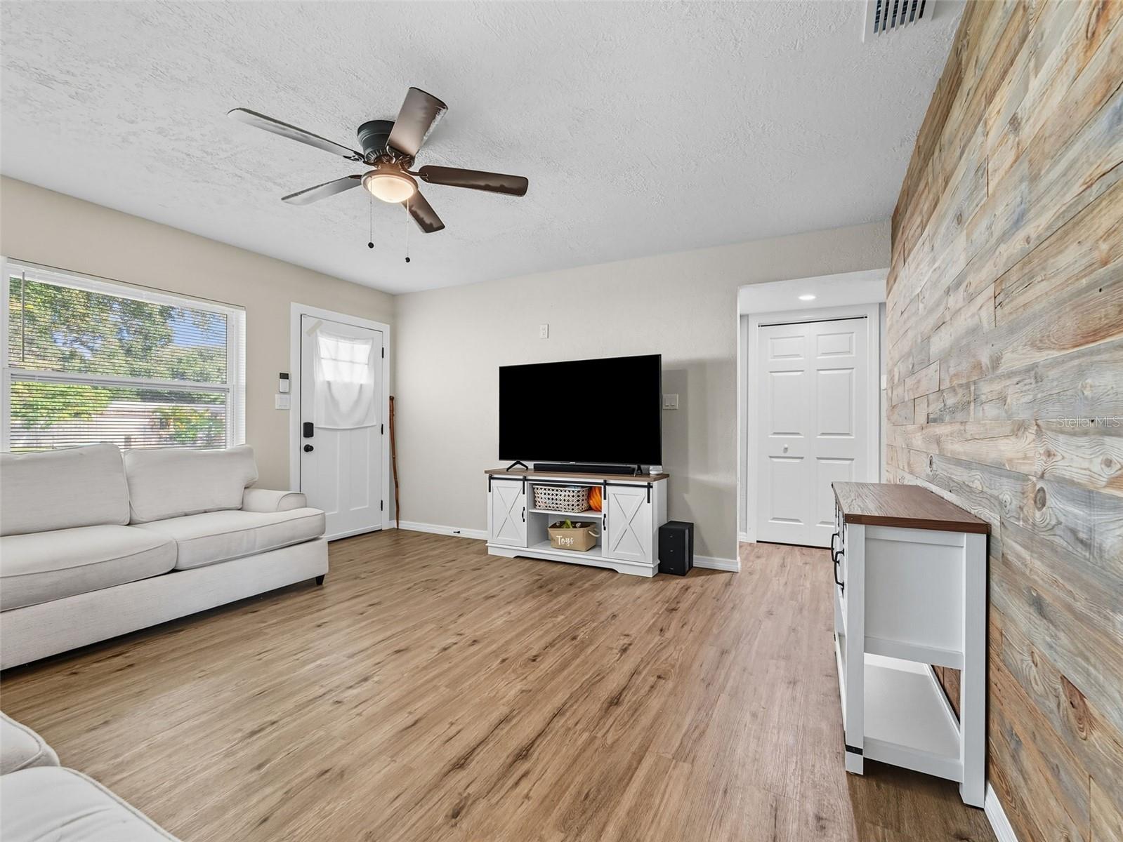 Welcome to this beautifully refreshed 3-bedroom, single-family home tucked in the heart of Largo. Inside, you’ll find new LVP flooring, fresh interior paint, and updated fixtures that bring a clean, modern feel. The kitchen is a standout with brand-new cabinets, sleek quartz counters, stainless steel appliances, and plenty of space for both storage and dining. A spacious living room, highlighted by an eye-catching accent wall, provides the perfect place to relax or entertain. The bathroom has been fully renovated with a contemporary vanity and a tiled shower/tub combination. Step through the back door to a covered porch overlooking a generous fenced yard—ideal for outdoor gatherings or simply unwinding. The space-saving tankless water heater will give you continuous hot water and and energy efficiency. Both roof and HVAC are 2022. With its prime location near the Florida Botanical Gardens, beautiful parks, shopping, dining, and the Gulf beaches, this home offers both convenience and lifestyle.