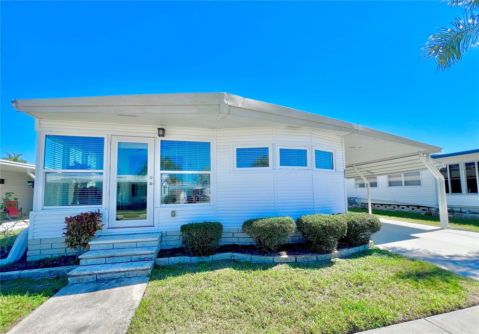 Welcome to this beautifully updated 2-bedroom, 2-bath home, ideally located just seven homes away from the clubhouse and golf starter shack. Situated in an enviable position, this home faces west, offering an expansive, unobstructed view of the street from the front kitchen windows — no homes directly across the way, giving you a sense of space and tranquility. Step inside to a meticulously remodeled interior, where the brand-new kitchen steals the show. Featuring elegant white shaker cabinets, sleek Corian countertops, and modern fixtures, it's a space designed for both function and style. Newer double-pane windows throughout ensure energy efficiency and a quiet, comfortable living environment. Additionally, a new 2022 A/C unit guarantees that you'll stay cool during Florida's warmest months. The master suite is equally impressive, offering a convenient INDOOR LAUNDRY CLOSET with full size front load stackable washer and dryer. Both bathrooms have been thoughtfully updated, including new vanities, ceramic tile showers, and modern fixtures. The vinyl flooring in the bathrooms adds a fresh, easy-to-maintain touch. One of the home’s standout features is the built-in dining room hutch, which adds character while providing abundant storage space. This residence shows exceptional pride of ownership, coming FULLY FURNISHED from top to bottom. With a blend of modern updates and timeless charm, this home is ready for you to move in and enjoy for years to come. Located in the renowned Fairway Village, a premier 55+ Resident-Owned Manufactured Home Community, this home provides the ideal blend of comfort and convenience. Fairway Village offers an array of amenities designed for an active, social lifestyle. Enjoy a private 9-hole par-3 golf course with two picturesque lakefront fairways, a practice putting green, and a 5-acre lake perfect for catch-and-release fishing. There are also two swimming pools, hot tubs, and eight sheltered shuffleboard courts. The newly completed 19,000+ square foot clubhouse (January 2022) is a true highlight, featuring a 700-seat auditorium/ballroom, large commercial kitchen, fitness center, library, billiard room, card room, and multiple sitting areas with Wi-Fi access throughout. With a variety of social activities organized by the Fairway Village Social Committee, you’ll always find something exciting to do. The 2025 monthly maintenance fee of $401 covers water, sewer, high-speed fiber optic internet, 220+ Spectrum cable TV channels, curbside trash pickup, and lawn care and pest control. Residents can enjoy unlimited golf for just $440/year (+7% sales tax). Non-members can still play with a greens fee of $15 during peak season and $8 in the off-season. Whether you're looking for a year-round residence or a seasonal getaway, Fairway Village provides the ideal environment to live your dream. Come see this exceptional home and experience all the benefits of living in this vibrant, friendly community!