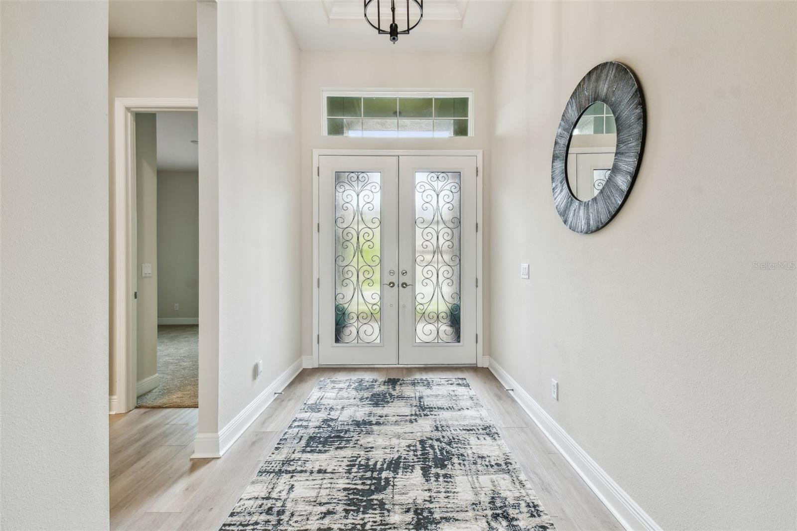 This is a "Never Lived In" Luxury Home with over $200k in UPGRADES, so it is STILL NEW!!! The heart of the home is the combined grand room with amazing wood beam coffer ceiling, incredible kitchen and casual dining with access thru the 24’ glass sliders to the outdoor living with its oversized covered lanai. The 12’ ceilings, crowned trays, and upgraded 8’ doors truly elevate this home!