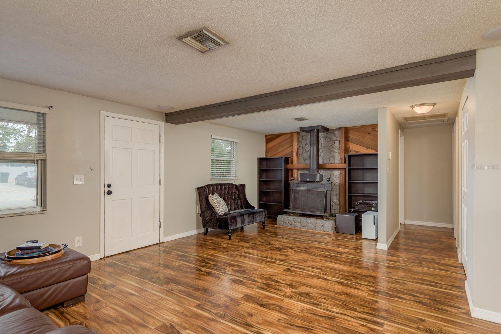 Assumable VA loan with 4.2% interest rate. Welcome to this beautifully maintained 3-bedroom, 1-bath home located in the friendly and conveniently located neighborhood of Walsingham Heights! This move-in ready home features a bright, open floor plan with stylish engineered wood flooring and a cozy wood-burning fireplace that adds warmth and character to the main living space. The kitchen offers a welcoming atmosphere with rich cabinetry, granite countertops, stainless steel appliances, and a convenient pass-through to the living area. A gorgeous breakfast bar and cozy nook create the perfect spot to enjoy your morning coffee, casual meals, or a good book with sunshine streaming through the windows—it’s a space that feels like home. The bathroom includes tasteful finishes, a granite vanity, and ceramic tile flooring. Step outside into the spacious, fully fenced backyard—ideal for entertaining, relaxing, or creating your own garden retreat. Additional features include a new roof (2024), new HVAC system (2023), new plumbing and fresh interior paint. Located in an X flood zone—no flood insurance required and NO HOA ( no crazy escalating fees! ) Ideally located near shopping, dining, entertainment, the beautiful Florida Botanical Gardens, wildlife parks and just 15 minutes from the Gulf beaches, this home offers comfort, character, and a location you’ll love.