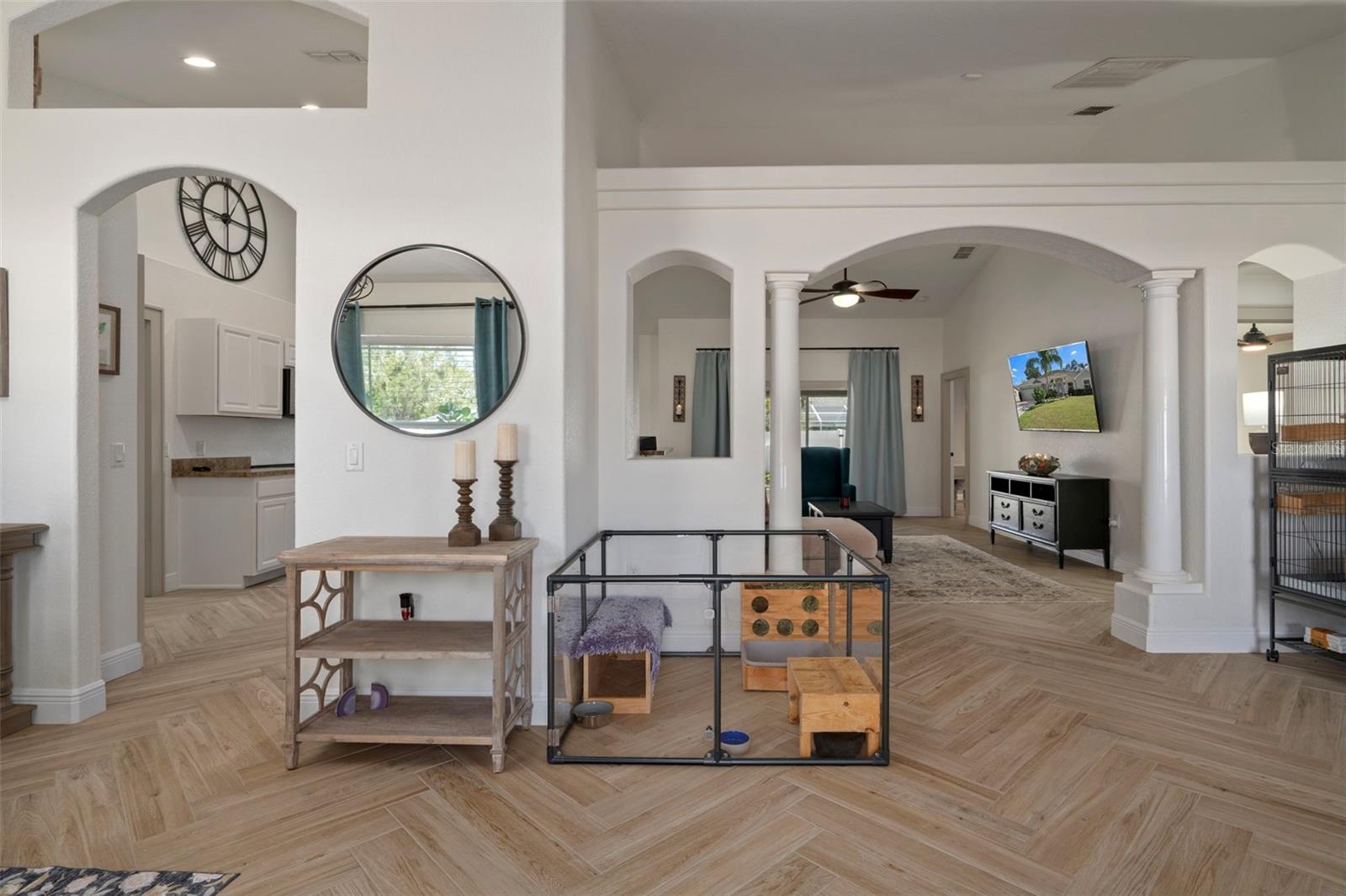 - Interior Features: Cathedral Ceiling(s), Ceiling Fans(s), Eat-in Kitchen, Kitchen/Family Room Combo, Open Floorplan, Primary Bedroom Main Floor, Split Bedroom, Thermostat, Vaulted Ceiling(s), Walk-In Closet(s)