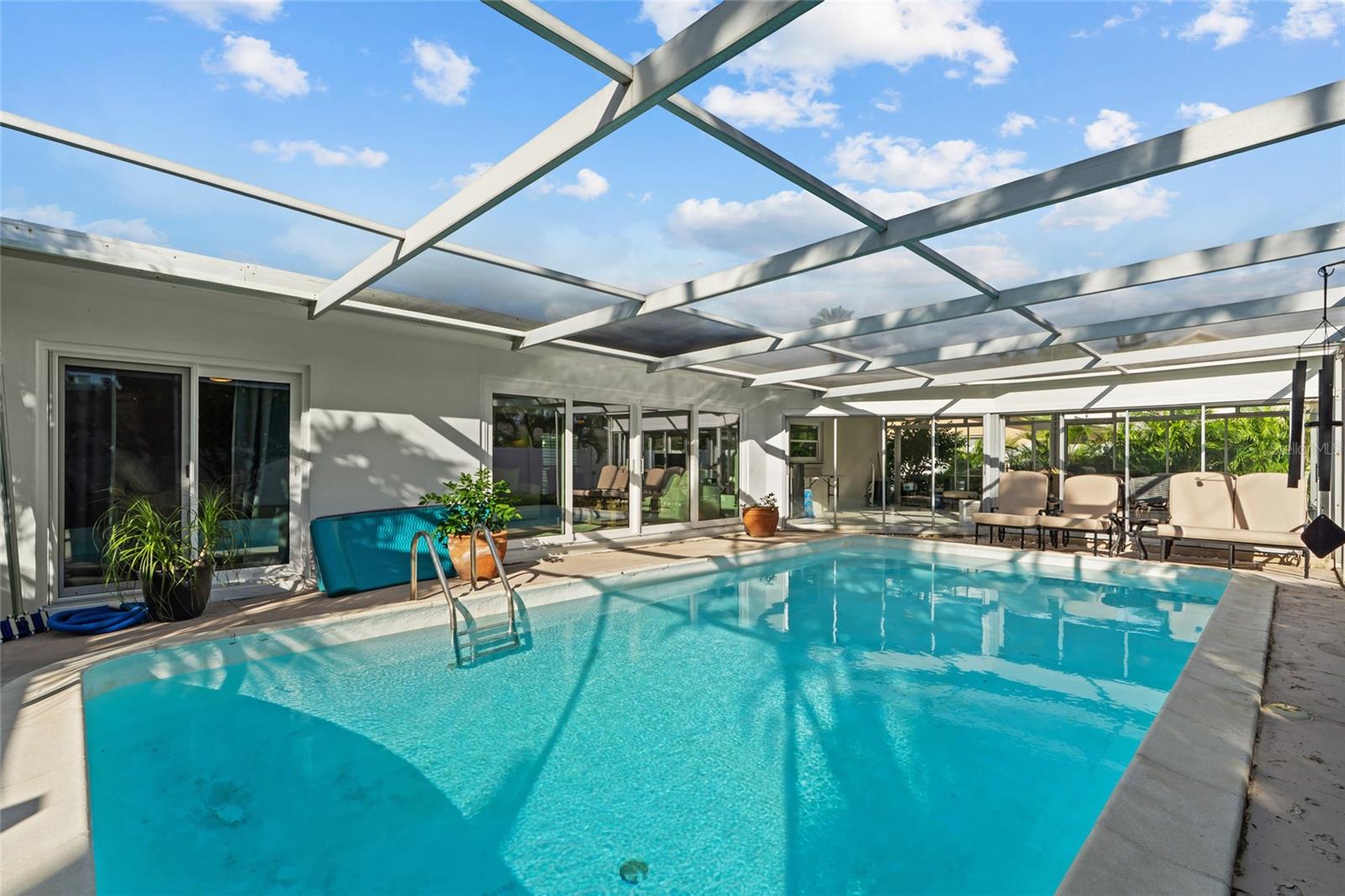 Welcome to your coastal retreat! Just minutes from the sand and surf, this stunning 2-bedroom, 2-bathroom pool home offers the perfect blend of modern updates and relaxed coastal charm. Step inside to discover an open and airy floor plan filled with natural light. The updated kitchen features sleek countertops, stainless steel appliances, and ample cabinet space—ideal for entertaining or quiet nights in. Both bathrooms have been tastefully remodeled with high-end finishes, offering a spa-like experience in your own home. The spacious primary suite boasts a walk-in closet and direct access to the outdoor oasis. Step outside to your private backyard paradise with a pool, lush landscaping, outdoor shower and a large, enclosed patio. Whether you are hosting weekend barbecues, enjoying sunset cocktails or simply unwinding under the stars, this outdoor space is designed for year-round enjoyment. Other highlights include newer HVAC including duct work and insulation, plumbing and electric all updated in 2023, hurricane impact windows and doors, indoor laundry, tankless hot water heater, new flooring throughout, outdoor lighting and irrigation system and so much more. Whether you're looking for a full-time residence, a vacation home, or an investment property, this coastal gem is the perfect blend of relaxed living and seaside charm. Don't miss this rare opportunity to own a updated, move-in ready home just moments from the coast, amazing dining, and all that Florida living has to offer. Call today for your showing. Paradise awaits!!!