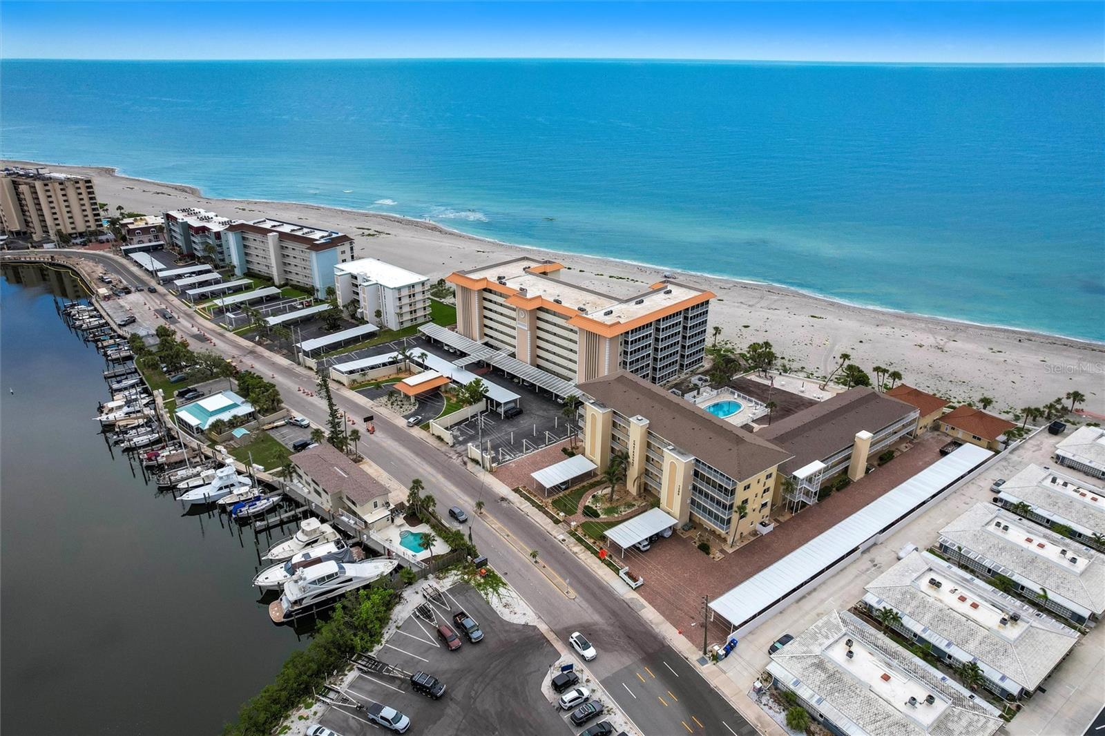 The first thing to ask yourself every morning: Shall I walk out my back door to the POOL or the BEACH? This roomy and bright 2 bed, 2 bath condo offers a serene blend of indoor comfort and outdoor luxury. Easy access to your private patio, extending your living space into the beautiful outdoors where you can step right onto the beach. The kitchen has been completely renovated with quartz countertops and stainless steel appliances! Living room has great size and decorative fireplace. New HVAC will soon be installed, at no cost to you. New hot water heater and sliding glass doors. The unit has 1 private assigned parking space! This elegant building offers a newly remodeled community room with full kitchen for your private parties, TV, game tables for playing cards or games with your friends, book exchange, sliding glass doors out to common grounds and saltwater pool, two separate dual full baths with showers off the pool grounds, barbecue grill, lounge chairs, table, chairs, poolside umbrellas, beach showers, bike rack, canoe and kayak rack, and private indoor mailbox area. There are six laundry rooms available plus hookups in the unit for private laundry. Nestled on Historic Venice Island, you're not just buying a condo; you're embracing a lifestyle. With easy access to dining, shopping, live music, yoga on the beach, boating and other outdoor activities, this location is unbeatable for those looking to enjoy the Southwest Gulf Coast of Florida. Marina and Venice Yacht Club right across the street. Freedom Boat Club a block away. Seize the opportunity to own a slice of paradise on Venice Island. Ideal for those seeking a vacation home, a permanent residence, or a rental investment. We just can't wait for you to live your dream and experience the allure of beachfront living at The Towers. Private storage cage, 5-by-4-foot, to lock personal items, bikes and more. 2-pet friendly policy and minimum 3-month rental rule provide flexibility for owners. No special assessments in the pipeline. All previous paid for. Carport roofs to be done shortly. Building earmarked to be painted. Furniture negotiable in unit.