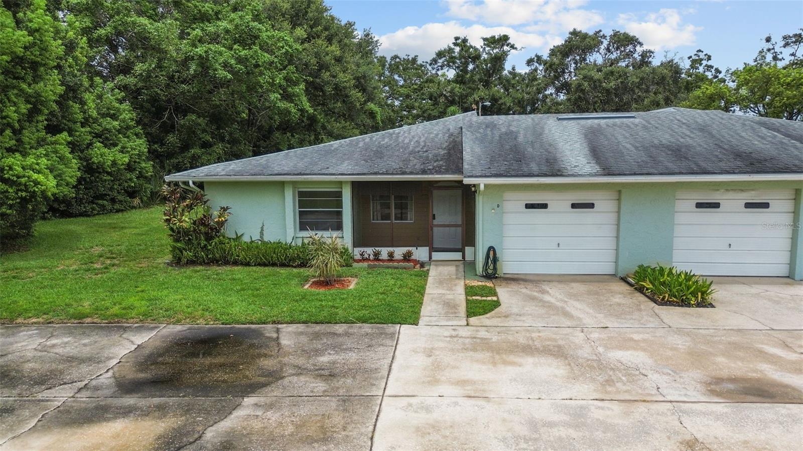 One or more photo(s) has been virtually staged. Come live in the heart of Palm Harbor in a lush 58 unit, age qualified community with a beautiful pool and clubhouse. Enjoy this renovated villa with new kittchen cabinets, granite counter tops, dishwasher and microwave as well as new vinyl floors from the kitchen into the dinning room. The primary en-suite bath has had a new shower installed July 2025. The house bath has had a new vanity, toilet and vinyl floors intstalled. The washer and dryer are newer and convey with the property. Water heater January 2018, AC installed June 2025.