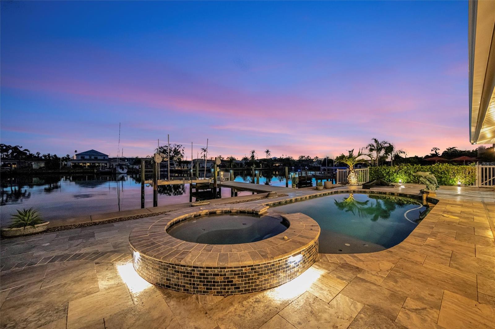 Experience the rare chance to create your own luxury waterfront retreat on one of Treasure Island’s most desirable deep sailboat water canals, offering quick access to Boca Ciega Bay and the shimmering Gulf of Mexico. Set on an expansive 70x120 lot, this 2,716 sq. ft. residence is a blank canvas for your vision, a heated pool, bubbling spa, and fire pit set against wide water views. The home’s generous layout invites effortless entertaining, with multiple gathering areas off the kitchen that flow to the pool deck and dock. The kitchen space, complete with pantry, is ready to be transformed into your dream culinary showpiece, while the formal dining room showcases tranquil water vistas. In the center of the home, a spacious lanai serves as a versatile bonus space — perfect for morning coffee, afternoon yoga, or evening cocktails in a private, breezy setting. The large family room offers a relaxed spot for movie nights or casual get-togethers. The primary suite is ready to become a serene sanctuary, with room for a spa-inspired bath, dual walk-in closets, mini split for cool sleeping on hot summer nights and an adjacent flex room ideal for an office or expanded retreat. Two additional bedrooms are generously sized, each providing comfort, natural light, and flexibility for guests or family. Additional highlights include an inside laundry room, peace of mind of storm-rated doors and windows, 2024 roof and gutters, lush landscaping, seawall (2018), dock with 16,000 lb. lift and water/electric, 2025 A/C, 2024 water heater, 2024 pool equipment, pebble tech pool and travertine flooring in the main living areas. All just minutes to Treasure Island Beach, vibrant dining, boutique shopping, downtown St. Pete, Tampa, and both airports. Bring your imagination — the possibilities are as endless as the views.