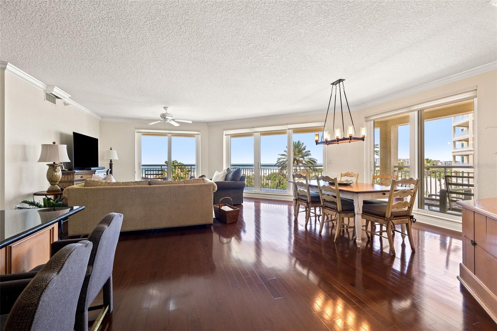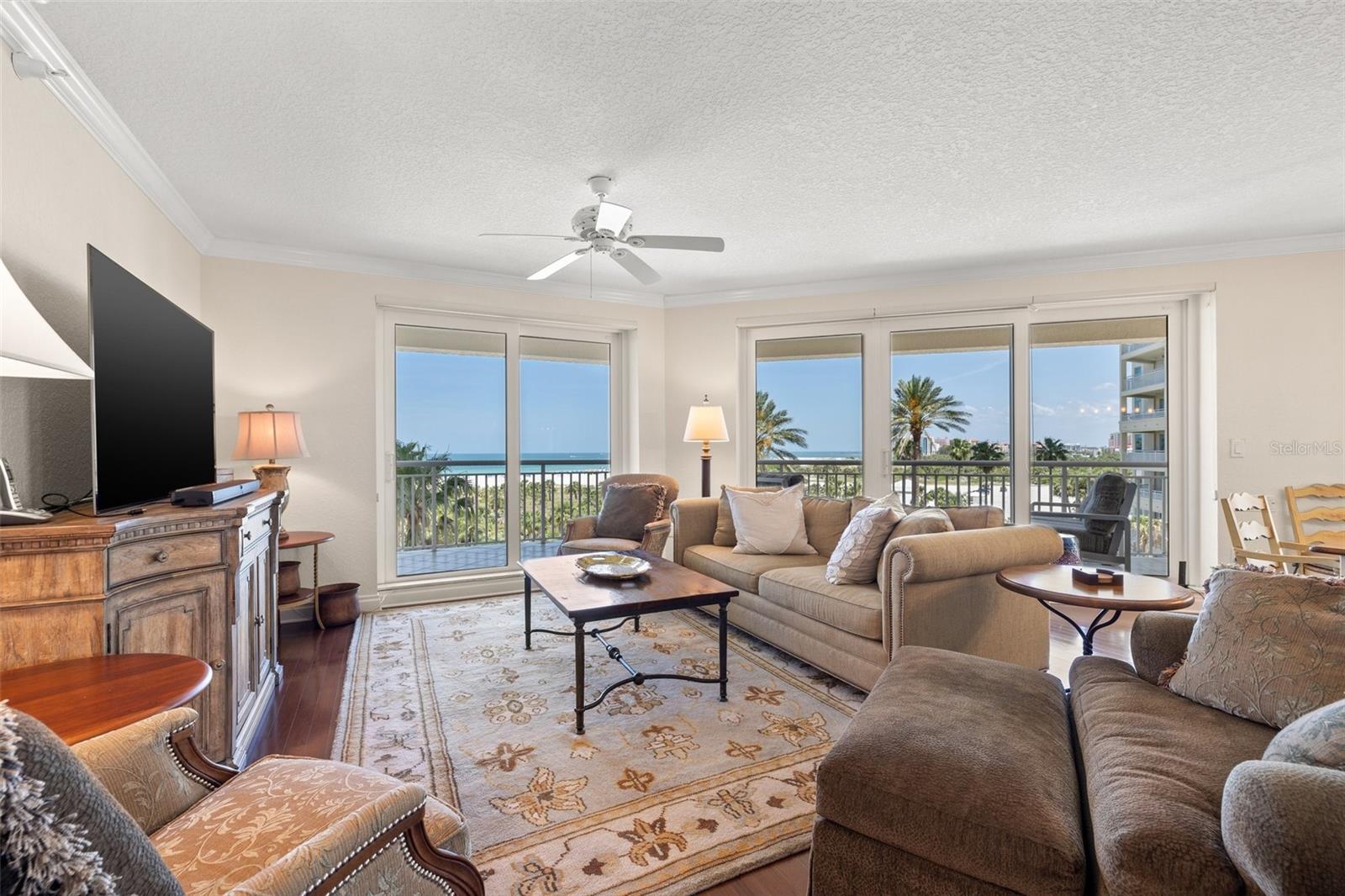 Renowned as Sand Key’s pinnacle of luxury living, The Grande presents this freshly remodeled residence, where captivating water views greet you at every turn. Perched for spectacular sunset vistas, the spacious three-bedroom, three-bath unit spans 2,521 square feet of refined coastal elegance. An open-concept chef’s kitchen anchors the home, showcasing Sub-Zero refrigeration, a Miele dishwasher with automatic detergent dispensing, and sleek custom cabinetry, perfect for effortless entertaining and daily culinary creativity. The primary suite is a true retreat, offering generous proportions, a spa-inspired bath with dual vanities, and a deep soaking tub for ultimate relaxation. Two additional bedrooms provide equal comfort and privacy for family or guests. Step outside to an expansive balcony and savor panoramic views that capture the gentle Gulf breezes and the tranquil beauty of Sand Key’s shoreline. Residents of The Grande enjoy a wealth of resort-style amenities, including 24-hour security, concierge service, two beachfront pools and a spa, poolside cabanas, a state-of-the-art fitness center with steam and sauna, two Har-Tru tennis courts, and private beach access. Whether you’re seeking personal enrichment, social engagement, or family fun, this premier community delivers an incomparable lifestyle.