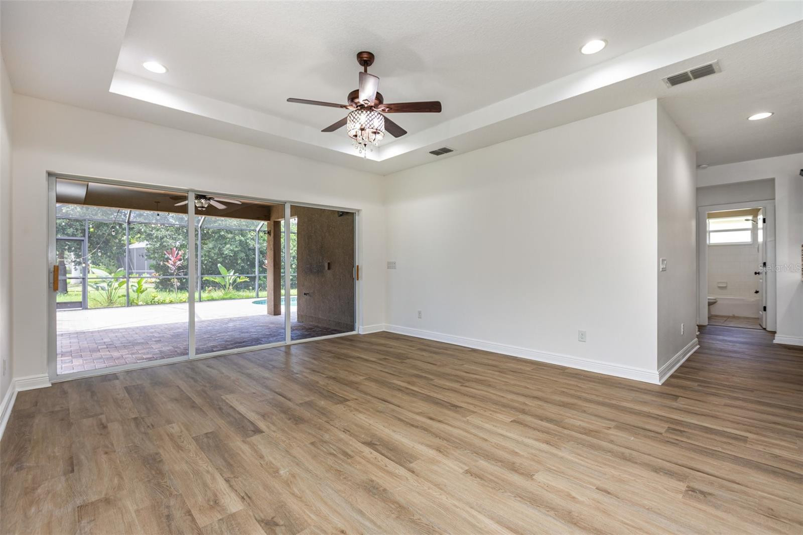 Step outside to the expansive enclosed lanai, the perfect setting for relaxing evenings or lively gatherings. Unwind in your heated spa, designed to melt away the stress of the day.