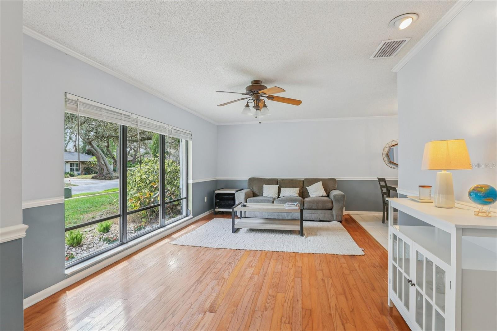 - Interior Features: Ceiling Fans(s), Crown Molding, Eat-in Kitchen, Open Floorplan, Primary Bedroom Main Floor, Solid Surface Counters, Stone Counters, Thermostat, Walk-In Closet(s)