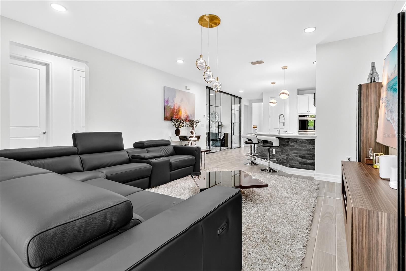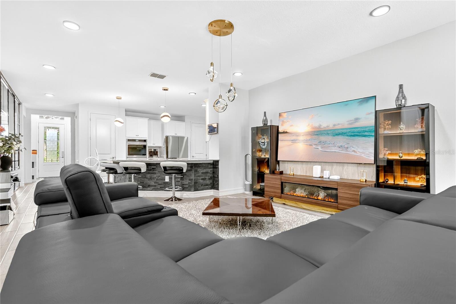Inside and you’re greeted by an open floor plan designed for today’s lifestyle. The spacious living area flows seamlessly into the heart of the home — a modern, fully upgraded kitchen with new stainless-steel appliances, custom cabinetry, and upgraded lighting throughout that ties everything together. The flex room, just off the main space, is perfect for a home office, formal dining area, or playroom, giving you the versatility to make the space fit your family’s needs.