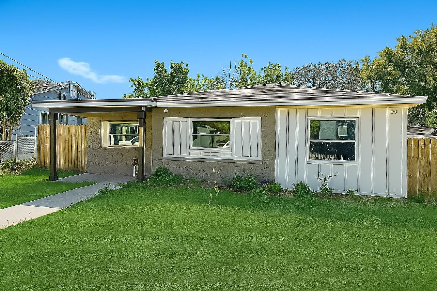 Short Sale. Short Sale. Completely renovated and move-in ready, this 3-bed, 2-bath home in Southeast Seminole Heights blends sleek modern design with warm, inviting style. The kitchen stands out with dark cabinetry, bright quartz counters, vibrant tile backsplash, and a slide-in range with statement hood beneath a wood-plank ceiling. A painted stone accent wall and black trim add depth and character throughout. The open floor plan offers flexible living and dining options with great sight lines. The primary suite sits privately at the rear, featuring a walk-through closet to the ensuite bath and laundry area. Fully fenced with rear-alley access to a paved drive which is ideal for parking or small boat/camper storage. Surrounded by new construction, this property delivers style, function, and outstanding value.
