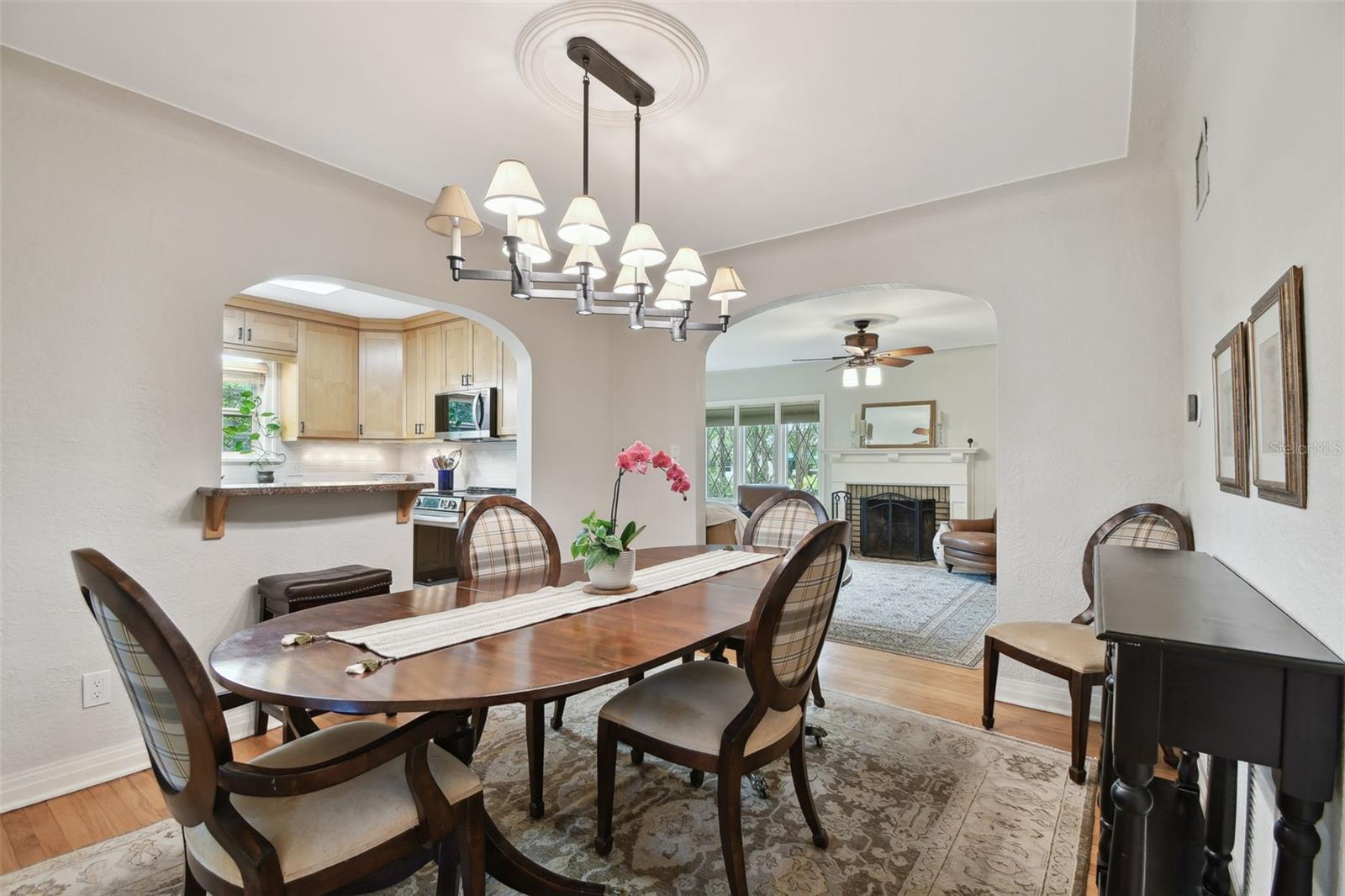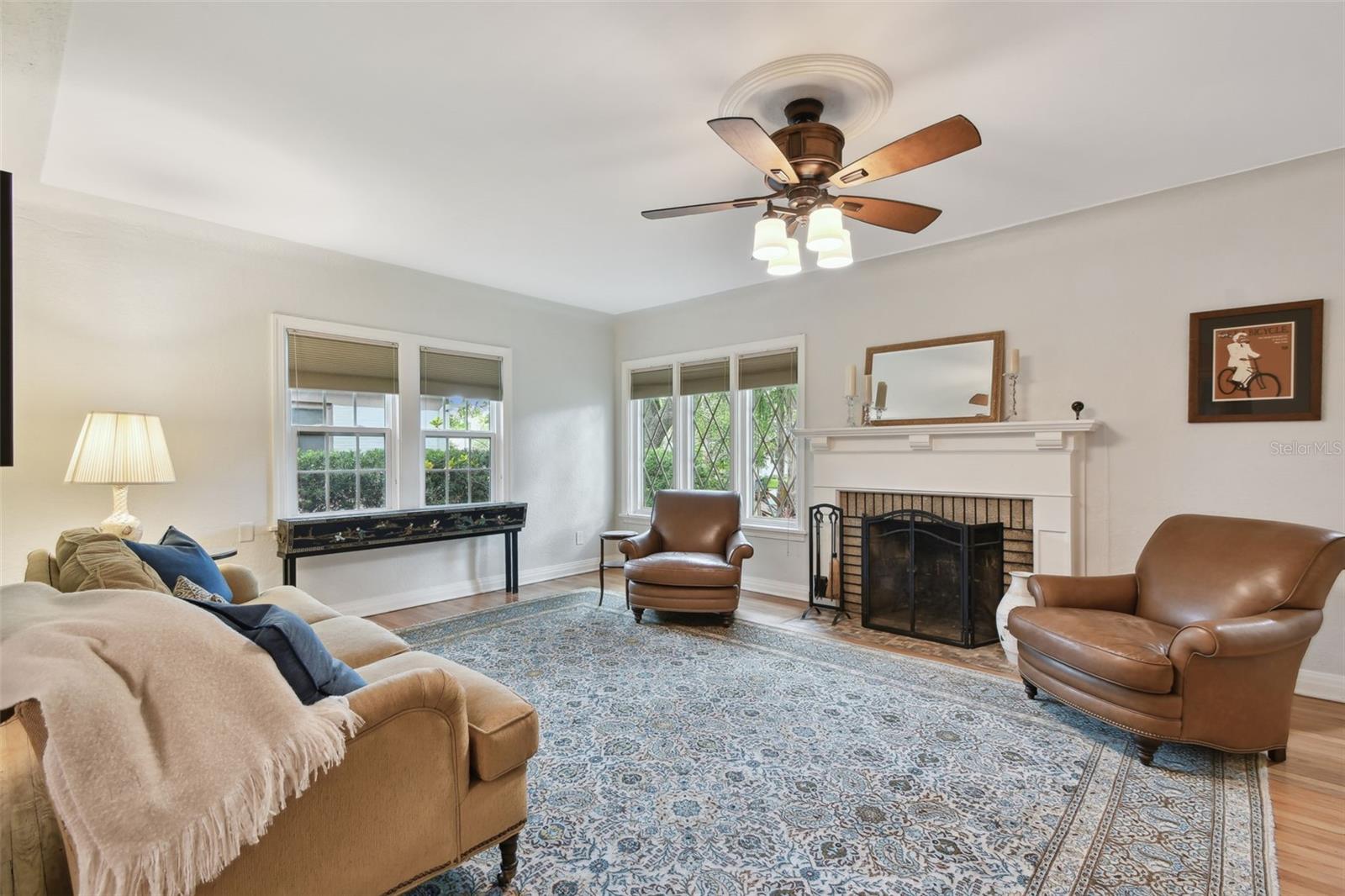 Welcome to this storybook Tudor bungalow in the desirable Euclid neighborhood of St. Petersburg, just minutes from vibrant downtown St. Pete, picturesque Crescent Lake, local shops, popular restaurants, beer gardens and easy interstate access. Among winding brick streets, towering oak canopies, and a beautiful mix of historic charm and tasteful new construction, this home blends timeless character with modern convenience. This three-bedroom, three-bath residence greets you with a spacious living room featuring a cozy fireplace, cove moulding and gleaming oak hardwood floors that flow seamlessly into a formal dining room, ideal or dinner parties and gatherings. The updated kitchen boasts solid wood cabinetry, a new range and thoughtful finishes, making it stylish and functional. Just off the dining room, a sun-kissed Florida room offers the ideal retreat for morning coffee, reading or relaxing, and it opens up to a massive screened and covered outdoor living room. With cathedral ceilings, a gas fireplace and a fully equipped outdoor kitchen, this incredible space invites year-round entertaining in your lush, tropically landscaped backyard. The entire second floor is dedicated to the primary suite, a bright and peaceful sanctuary, complete with a private bath and plenty of room to unwind and recharge. The home also features impact-rated windows throughout, a tankless water heater for energy efficiency, updated plumbing and electrical systems for peace of mind and a detached two-car garage with a full bath, ideal for an artist studio, workshop or even a future guest suite. Best of all, the property is outside a flood zone and has never experienced any storm damage, according to the owner, offering an added layer of security and confidence. This charming and thoughtfully updated home offers the best of indoor-outdoor Florida living in one of St. Pete’s iconic neighborhoods. Don’t miss your opportunity to own a piece of Euclid's historic magic.