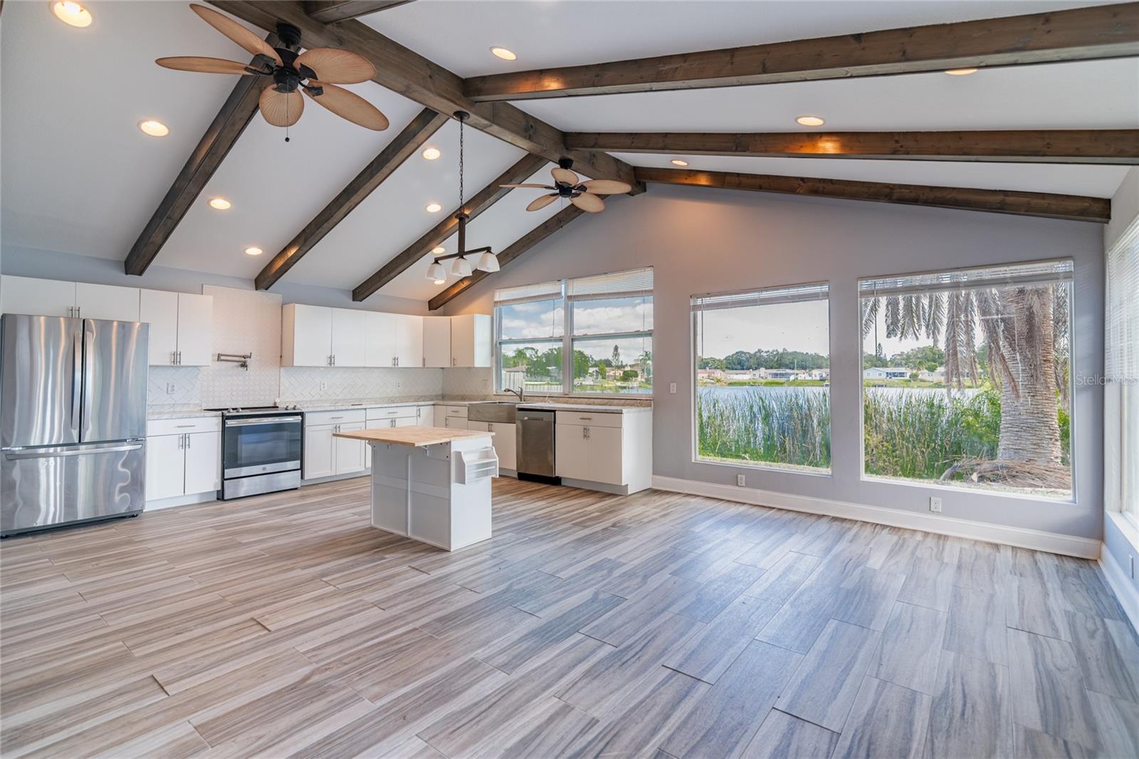 - Interior Features: Cathedral Ceiling(s), Ceiling Fans(s), Eat-in Kitchen, Open Floorplan, Thermostat, Vaulted Ceiling(s), Window Treatments