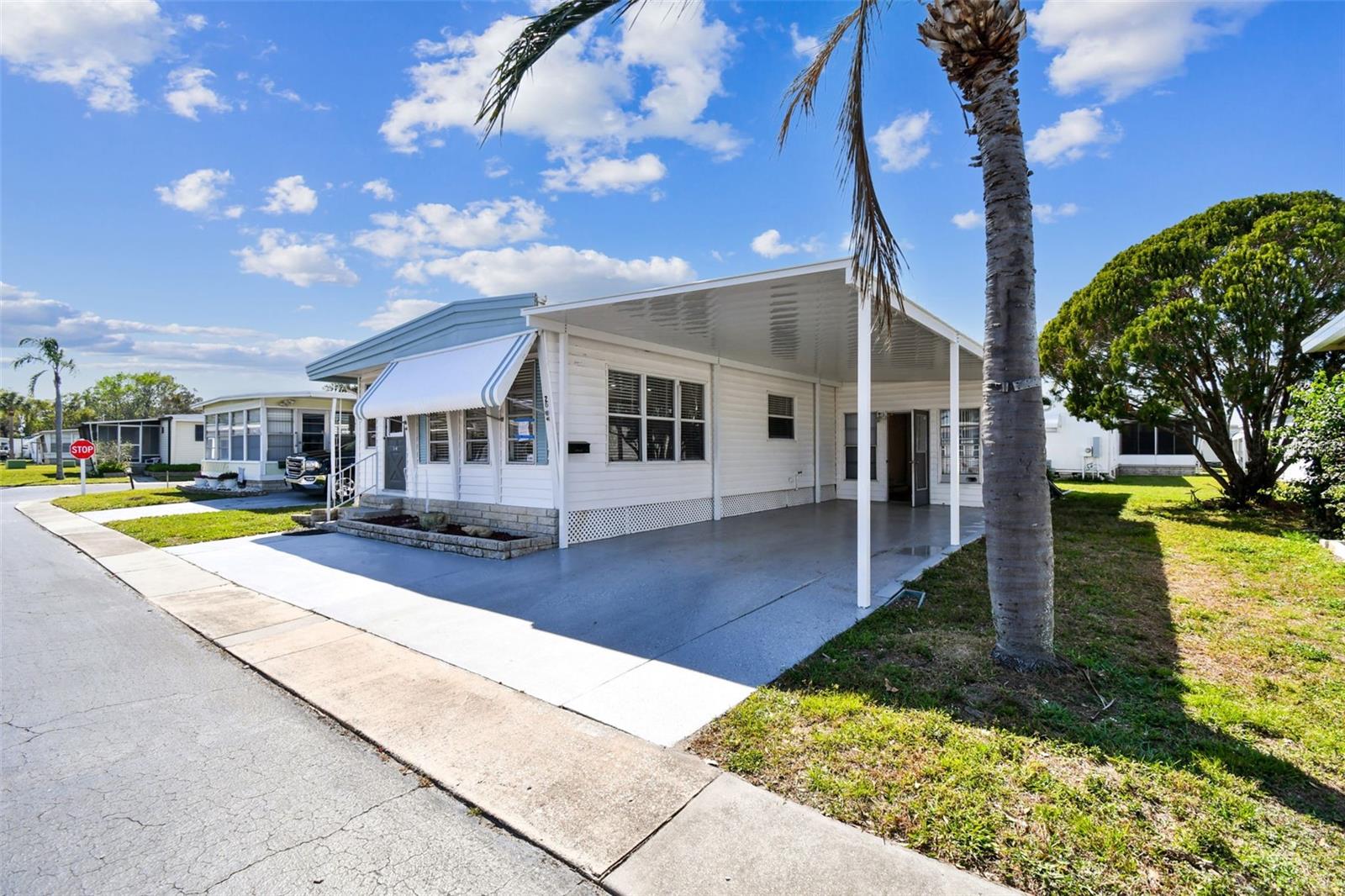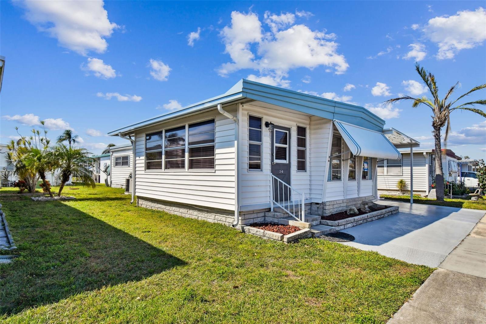 The spacious living area provides a welcoming ambiance for relaxing or entertaining guests, with large windows that fill the space with natural light. The additional seating area is ideal for enjoying your morning coffee or utlize it as an office. This mobile home features two bedrooms, including a spacious primary bedroom with an ensuite bathroom, and 3 closets providing ample storage for your Florida wardrobe. A second bedroom offers versatility, perfect for guests or use as a home office or hobby room.