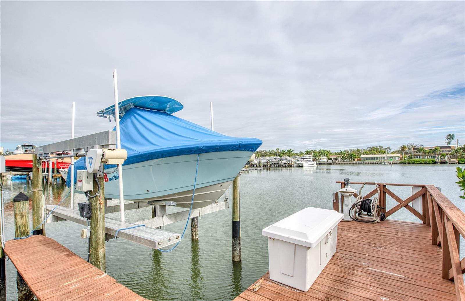 Villa plus a slip with a 13,000 lb lift and a garage is now available to for you to preview. This 1470 single level unit also is being sold fully furnished. This beautiful villa has been updated and has all the amenities you need. There is 2 bedrooms ,2 bathrooms, a den, laundry room, wood burning fireplace, a dry bar with wine cooler and a wonderful screened in lanai over looking a pond with circulation (fountain). The lanai also has hurricane shutters. Though there was no water damage to this unit after both hurricanes in 2024. The location of Pasadena Cove is so desirable. You can be at St. Pete Beach in 5 minutes and downtown St. Petersburg in 15 minutes. The International Airport in Tampa is only 30 minutes away too. The community offers gated security, pet friendly, heated pool, fitness center and a club house. There is plenty of walk ways to enjoy your daily walks including water views!