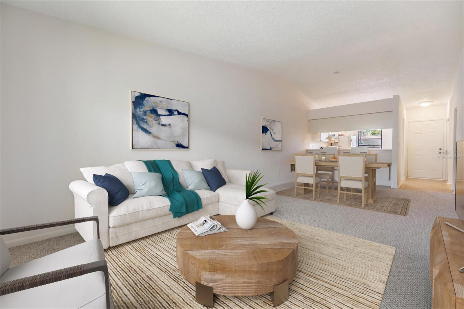 One or more photo(s) has been virtually staged. Welcome HOME! Enjoy this UPDATED 1 Bedroom 1 Bath VILLA in Dunedin. NEW Carpet, New Wood-like Flooring, Freshly Painted Interior, NEW A/C & Duct work 2024. Great Room Floor plan with Dining area. Eat in Kitchen with Breakfast Bar- Great for Entertaining. Master Suite features 2 Closets (one Walk-in) adjacent Full Bath with Tub/Shower. Inside Laundry Room with shelving & Washer/Dryer for convenience. As a resident, you’ll have access to the community's sparkling Pool and clubhouse. The monthly condo fee includes Cable TV, Internet, Sewer, Trash, Water, Insurance, Exterior Maintenance and Grounds Maintenance. 1 Assigned Covered Parking space at the front door and Extra Parking for your guests. Super Location close to Historic Downtown Dunedin, Post Office, Shopping, Movies, Restaurants, County Parks, Golf, YMCA, Top Rated Beaches and Tampa International Airport.