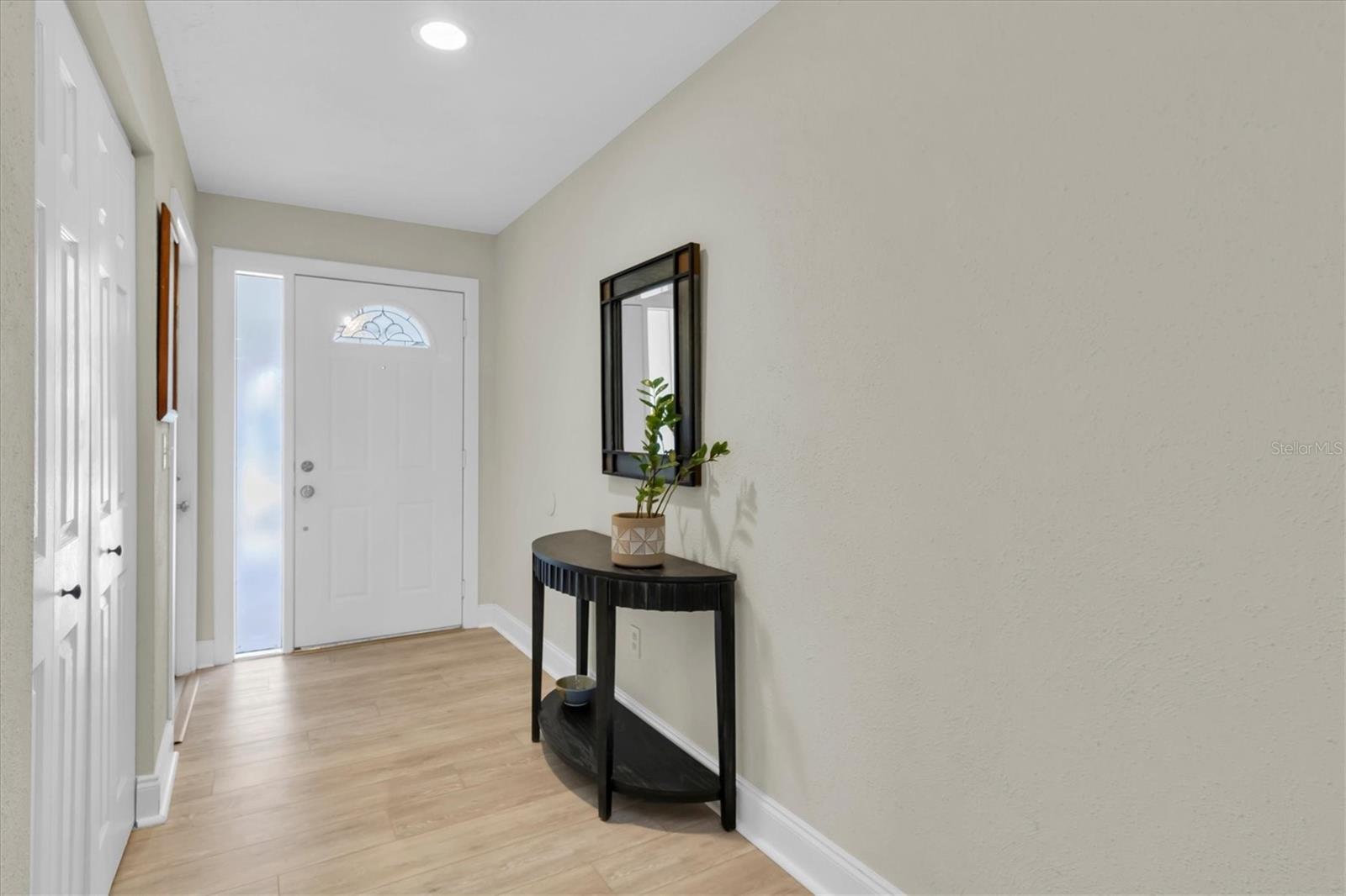 Brand New LVP Flooring just installed with lifetime warranty, transferrable to new owner makes this home "Move-In Ready". Beautifully maintained 3 bedroom, 2 bath, 2 car garage family home with wonderful open floor plan for entertaining, family gatherings, or cozy evenings. Dream kitchen with granite countertops, stainless steel appliances, wood cabinets and custom lighting is open to living, and dining rooms making the space very inviting. A year round "Sun Room" flows from the kitchen and is fully enclosed with glass windows, complete with mini split ac/heating unit making it useable and comfortable during summer and winter months. Relax and unwind in this space which brings the outdoors inside while remaining comfortable. The completely fenced yard and tropical landscaping creates your own private oasis. This private neighborhood has underground utilities, sidewalks, and its own entrance to Largo Recreational Center's Park. Perfect for nature lovers with walking trails. Close to the gorgeous Gulf beaches just 10 minutes away yet safe and secure in this "NO FLOOD ZONE" and "No Flood Insurance Required". Centrally located close to shopping, restaurants, recreation centers, parks, golf courses, and easy commuting. Room measurements are approximate and should be verified.