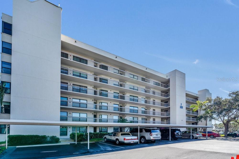 RARE OPPORTUNITY FOR ALL AGES TO ACQUIRE A PIECE OF PARADISE IN A 3RD FLOOR CORNER UNIT SOAKED WITH NATURAL LIGHT, SET IN THE GATED WATERFRONT RESORT-LIKE COMMUNITY OF PASADENA COVE, CHECKING ALL THE BOXES FOR OPTIMAL FLORIDA LIVING! Marvel at the breathtaking sunrises that greet each day while enjoying the refreshing breezes on your screened-in BALCONY and catching sunsets on the opposite side of the home from you kitchen and guest bedroom. The thoughtfully designed split floor plan enhances privacy; the spacious primary suite includes an ensuite step-in shower and a custom organized walk in closet, while the guest bathroom boasts a tub. The unit features tile and wood flooring throughout, a full-size WASHER/DRYER in your private laundry room, a pantry, generous closet space with an extra storage locker in the building, COVERED CARPORT SPACE #390, with options for bike, boat, and trailer storage as well. Additional amenities include a heated pool and spa, shuffleboard, pond with relaxing fountain, renovated clubhouse that hosts social gatherings along with a fitness center, billiards room, and a private marina where you can rent or buy DEEP WATER BOAT SLIPS when available. As you stroll through the meticulously kept grounds you will be amazed at the nearby amenities outside the complex with everything you could need, AND just minutes away from pristine Gulf Beaches and a short ride to Tampa International Airport and vibrant downtown Gulfport and St. Pete. PETS ARE WELCOME, 90 day rentals allowed, low HOA fee covers just about everything including building insurance, water, trash, sewer, cable tv and internet, and for peace of mind THE MILESTONE INSPECTION HAS ALREADY BEEN COMPLETED WITH THE REPORT AVAILABLE AND NO ASSESSMENTS. For immediate enjoyment this home could also come turn key furnished with the right offer, don't let this one get away, make your appointment to see this property today.