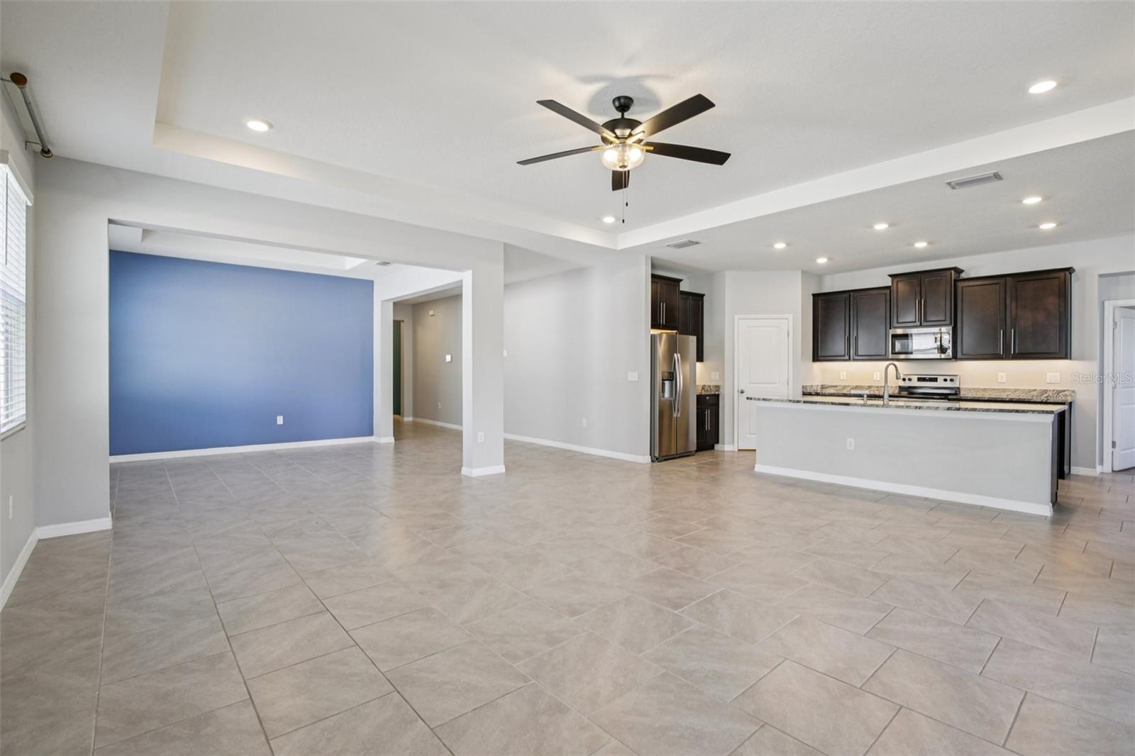 - Interior Features: Eat-in Kitchen, High Ceilings, Kitchen/Family Room Combo, Living Room/Dining Room Combo, Open Floorplan, Primary Bedroom Main Floor, Split Bedroom, Stone Counters, Thermostat