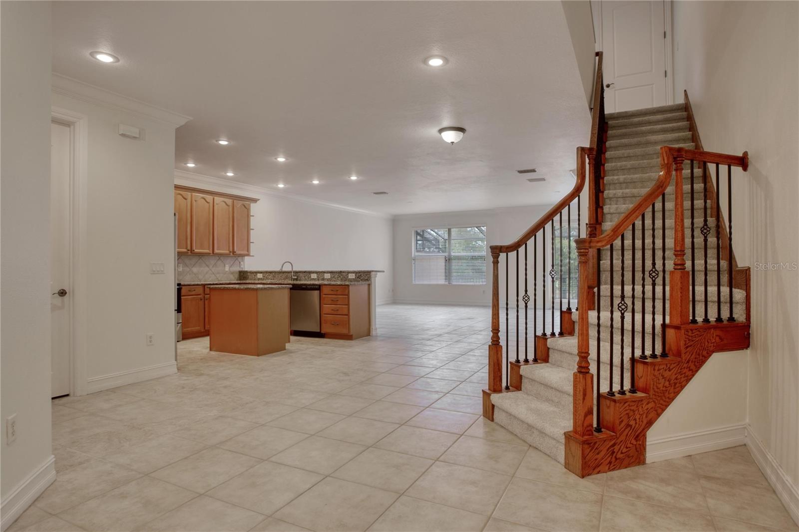 - Interior Features: Crown Molding, High Ceilings, L Dining, Living Room/Dining Room Combo, Open Floorplan, PrimaryBedroom Upstairs, Solid Surface Counters, Solid Wood Cabinets, Split Bedroom, Stone Counters, Thermostat, Window Treatments