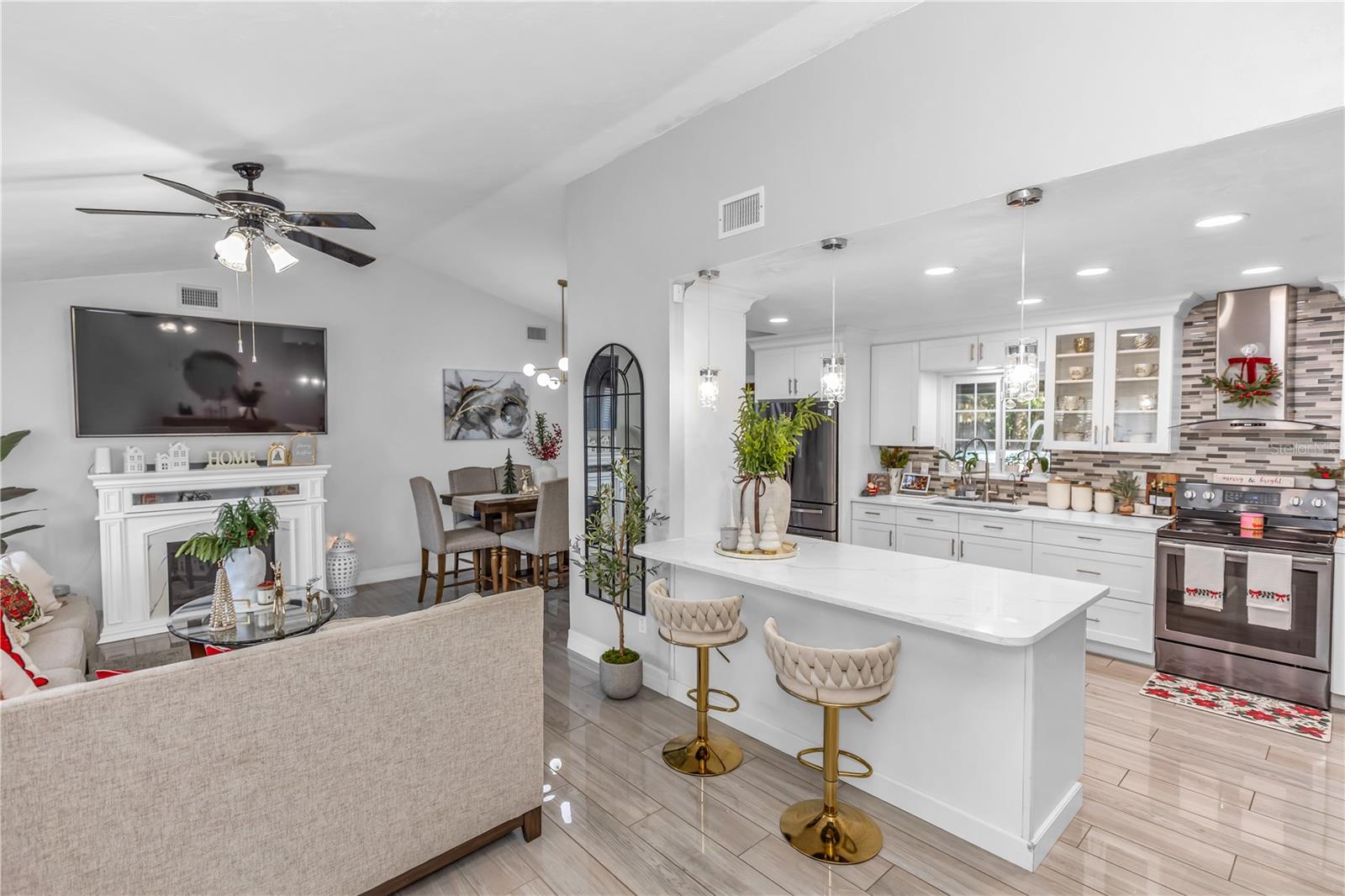 Welcome to this fully renovated, move-in-ready residence in the heart of Deltona, offering modern finishes, generous space, and effortless flow. This beautifully updated home features a stunning brand-new kitchen complete with elegant marble countertops, stainless steel appliances, and an open-concept layout that seamlessly connects the main living areas — perfect for both everyday living and entertaining. A separate formal dining space provides an inviting setting for gatherings and special occasions.