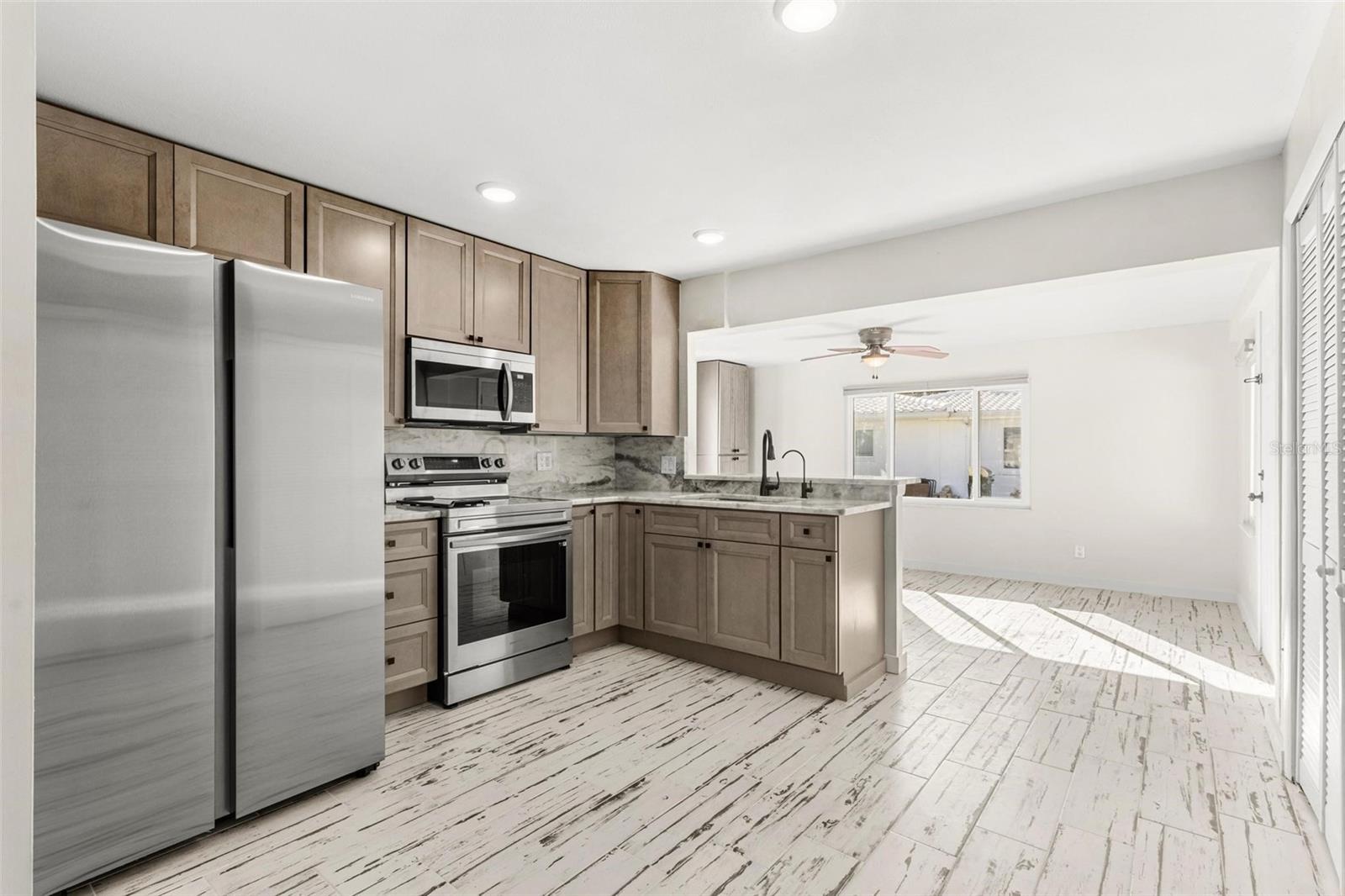 Welcome to your dream coastal retreat! This beautifully remodeled home has been thoughtfully updated from top to bottom, blending modern design with everyday comfort. A durable barrel tile roof, installed in November 2024, provides long-lasting peace of mind. New windows, hurricane shutters (2023), as well as a new AC unit (2022) to further enhance the home’s efficiency and value. At the heart of the home, the brand new kitchen shines with sleek grey cabinetry, a Samsung appliance package, and elegant granite countertops – offering both style and functionality. Ceramic tile flooring runs throughout, creating a seamless, sophisticated look that’s easy to maintain. The primary bath feels like a private spa, featuring a frameless glass shower door and luxurious updates. Located in a sought-after 55+ community, this home offers the charm of single-family living with the convenience of a maintenance-free lifestyle. The HOA covers exterior maintenance, landscaping, and common area upkeep. Residents enjoy access to a sparkling pool, fitness center, and meticulously maintained grounds. Ideally situated, the home is just 2 miles from the beach – perfect for sunset strolls – and only 1 mile from the Publix shopping center on Oakhurst for easy errands and dining. Don't miss this opportunity to own a thoughtfully upgraded home in a prime location. Schedule your private showing today!