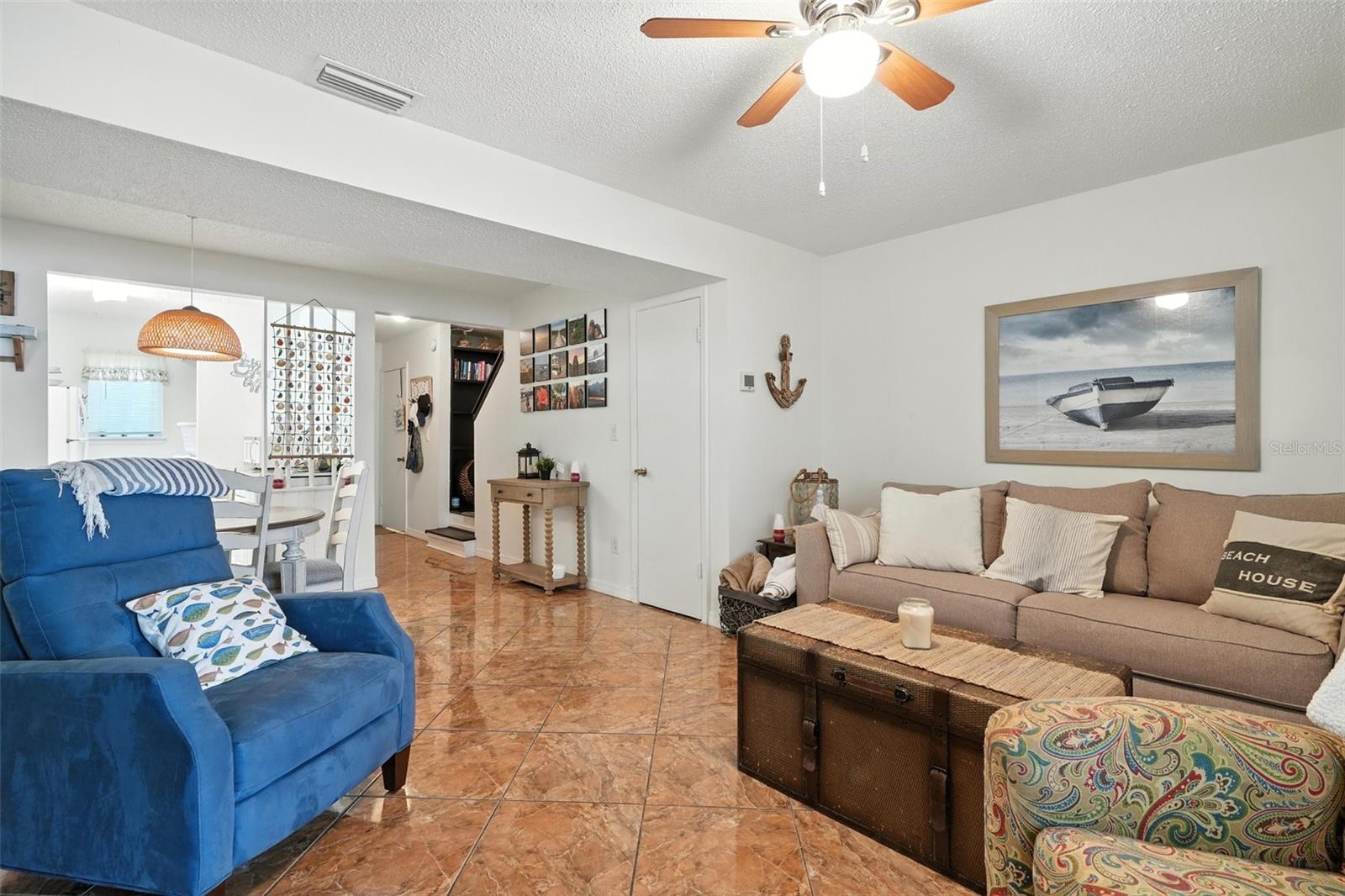 Step into this well-maintained two-story townhouse designed for both style and convenience. The spacious first floor features durable tile flooring throughout, creating a clean and elegant foundation. Off the living and dining area is a welcoming half bath that adds practicality for guests, while the kitchen showcases sleek appliances and an adjacent laundry area complete with in-unit washer and dryer—making everyday chores a breeze. Just off the living area you’ll find an enclosed porch that can be used as an office, bonus room, or cozy retreat. Upstairs, warm laminate flooring flows through two comfortable bedrooms and the full bathroom. This private second floor retreat ensures both bedrooms share easy access to the full bath—perfect for family or roommates. The thoughtful layout and modern finishes make this home move-in ready. Unit can come furnished (from furniture to dishes) or unfurnished. Enjoy a wealth of community amenities, including a heated pool, pickleball and tennis courts, a clubhouse, playground, and even a designated car wash area. Located just minutes from St. Petersburg, Tampa, and Clearwater, this home offers the perfect balance of suburban tranquility and easy access to city life. A/C and electric box are just five years old. Whether you're a family, first-time buyer, or downsizing, this townhouse offers the ideal combination of location, lifestyle, and low-maintenance living. All measurements are approximate and should be verified by buyer or their representative.