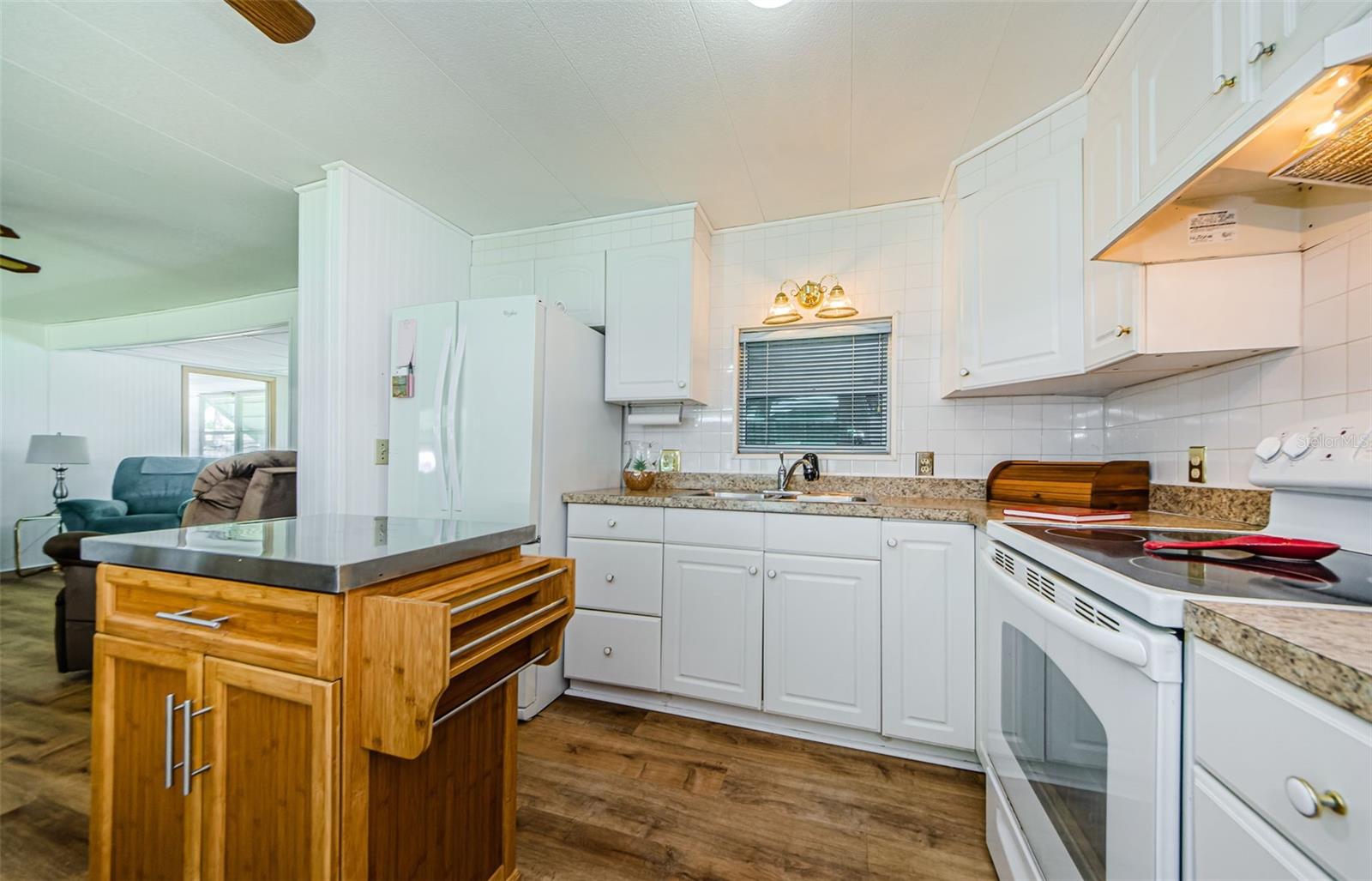 Great location! Updated, Charming, & Spacious Furnished 2BR/2BA Home with Florida Room or Optional 3rd Bedroom adds another 105 square feet & not included in the heated square footage. ** You will love Tarpon Shores Resident Owned 55+ Community. It is warm and welcoming with many amenities, events, onsite management, and golf-cart friendly. YOU OWN A SHARE IN THE CO-OP! No LOT RENT! The $40K share price is included in the list price and CAN BE FINANCED through the CO-OP. The split bedroom floor plan provides privacy and flexibility, with both bedrooms featuring built-in closets and dressers. The hall bath remodel completed in March 2022 features double sinks, solid surface countertops, step-in shower with grab bars, and linen storage, including a built-in hamper. The second bedroom boasts its own ensuite full bath complete with an updated step-in shower. The open living area offers built-in cabinets, a sleeper sofa, two comfy recliners, and the TV is included. There is a large formal dining room and another built in closet. The kitchen is updated and has plenty of cabinet space, a mobile island, and a cozy dinette area. Appliances include a Whirlpool refrigerator with icemaker (2015), a GE microwave (2020), Range with hood and exhaust fan. ***ADDITIONAL FEATURES INCLUDE: Interior walls are full wall wainscoting; a trend you will find in upscale and custom homes. Updated thermal double-pane windows throughout (except the Florida room & guest bath), vinyl plank flooring, and ceiling fans in both bedrooms, the living room, and the kitchen. New Roof Over & AC/Heat (2017), New Vapor Barrier (11/2018), Access Ramp (2022)Two-car carport, and storage shed, vinyl siding with awnings, downspouts and gutters, sprinkler system.*** Offered furnished (optional) for turnkey convenience—just bring your suitcase! This Single-Wide PLUS home truly offers more space, thoughtful upgrades, and move-in ready comfort. ***THIS VIBRANT, FRIENDLY COMMUNITY OFFERS: resort-style amenities, including a large clubhouse, heated pool, BBQ grills, a fully equipped kitchen, a library, billiard room, covered shuffleboard courts, bocce ball, pickleball, horseshoe pits, and a calendar full of social activities and monthly newsletters. Enjoy affordable, MAINTENANCE-FREE LIVING WITH A LOW MONTHLY CO-OP FEE OF $326, covering lawn mowing, lawn spraying (fertilizer, insecticide, and weed control), water, sewer, trash pickup, cable TV with a park information channel, internet and Wi-Fi. No additional fees, no special assessments, and low taxes—all in a non-flood hazard zone.*** Nearby golfing, the Pinellas Trail, parks, beaches, boating, World-Famous Tarpon Springs Sponge Docks, shopping, fine dining, and breathtaking sunsets just minutes away. This is a must see!