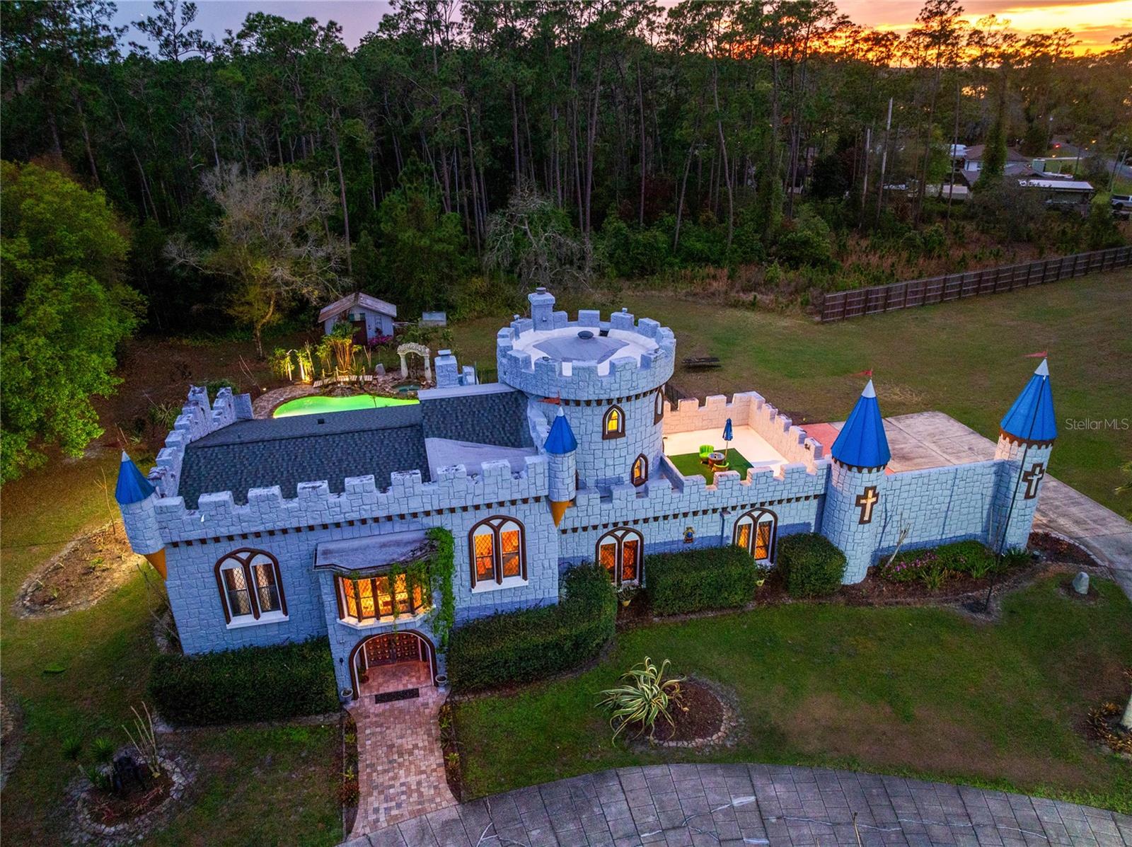 Set behind a gated entrance on 10 private acres in the sought after Lake Mary Jane area, this unforgettable castle estate is one of Central Florida’s rarest offerings. With 5 bedrooms, 3 full baths, 1 half bath, and 4,680 square feet of living space, the property blends striking architecture, expansive grounds, and a truly unique multi level layout into an experience that feels worlds away, yet remains within Orlando.