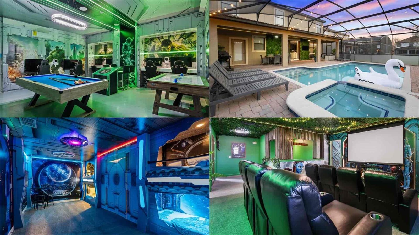 A RARE FIND WITH INCREDIBLE IMMERSIVE THEMING THROUGHOUT! If you’ve been searching for a short term rental that stands out in the realm of 'just another vacation home' this is the one. The attention to detail in the décor and themed rooms is next level! It creates the type of guest experience that guests seek out and share online! The kind of experience that converts interest into bookings. Located inside the famous Champions Gate Resort, guests enjoy full access to The Oasis Clubhouse featuring the lazy river, water slide, splash pad, gym, theater room, tiki bar, cabanas, and more. This is one of the most in demand vacation resort communities near Disney for a reason! This home is priced to sell before years end, and we are prepared to move fast with a ready buyer.