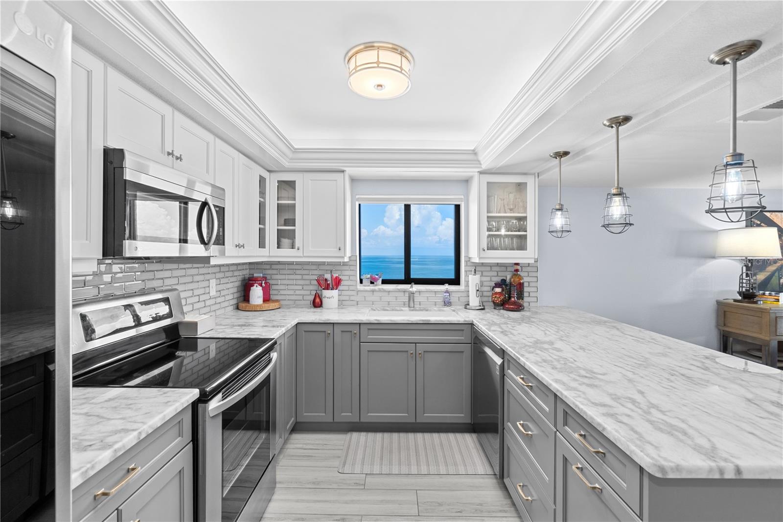 ***PLEASE CLICK ON VIRTUAL TOUR LINK*** Where the Gulf meets the sky - an 11th-Floor Gulf-to-Bay Sanctuary on Sand Key! High above the shoreline, where morning light spills across the water and evenings melt into vibrant sunsets, lies a residence that captures the very essence of coastal luxury. This unit is being offered fully furnished including all furniture, appliances, kitchenware, linens, decor and artwork. From the moment you step inside this 11th-floor corner retreat, the world beyond disappears. Walls of glass frame unobstructed views of both the Gulf of Mexico and the Intracoastal Waterway, drawing your gaze to an endless horizon. Three private balconies—totaling over 500 square feet of outdoor living space—invite you to savor every sunrise, every sunset, every salty breeze. In 2020, this residence was completely transformed into a turnkey showpiece. Every detail was carefully chosen by the seller for beauty, function, and harmony. The open-concept great room flows effortlessly from living to dining to kitchen, with marble countertops, soft-close shaker cabinetry, under-cabinet lighting, and premium stainless appliances creating an entertainer’s dream. Glossy slender-plank ceramic tile flooring runs throughout, catching the light and amplifying the home’s modern coastal aesthetic. Every door and window opening is equipped with exterior hurricane shutters for ultimate storm protection, and custom interior solar shades—translucent in the great room to filter light while preserving views, and opaque in the bedrooms for complete privacy—offer both elegance and functionality. Private spaces, perfected: The primary suite is a masterclass in retreat design—sliding doors open to a private balcony, while the en-suite bath offers dual vanities, a walk-in shower, and an oversized walk-in closet. The guest suite offers balcony access of its own, ensuring visitors experience the same breathtaking views and comfort. Prime, Secluded Beachfront - Set on one of Sand Key’s most coveted stretches of shoreline, this residence offers the rare combination of direct beachfront access and serene seclusion. Here, you can step from the lobby to the sand in minutes—yet the private, uncrowded setting makes it feel worlds away from the bustle of nearby Clearwater Beach. Miles of pristine coastline are yours to explore, with only the sound of waves and the call of seabirds as your soundtrack. Beyond your door, amenities rival the finest for resort living year round: a heated waterfront pool, grilling station, poolside tiki bar, and beachfront tiki huts create the ultimate backdrop for leisure. Assigned under-building parking, a private storage unit, and a pet-friendly policy add everyday convenience. With Milestone & SIRS reports complete, monthly fees covering flood insurance and hurricane shutters throughout, peace of mind is built right in. Monthly fee also include water, sewer, trash, cable, and internet. Perfectly positioned just a short distance from Sand Key Beach State Park (nature trials and dog park), Bay Park (pickleball/tennis courts and playgound), Shops On Sand Key (dining and retail) and Clearwater Beach’s vibrant dining, boutique shopping, and marine activites. This isn’t simply a condo. It’s your front-row seat to the Gulf - turnkey, timeless and its waiting for you!
