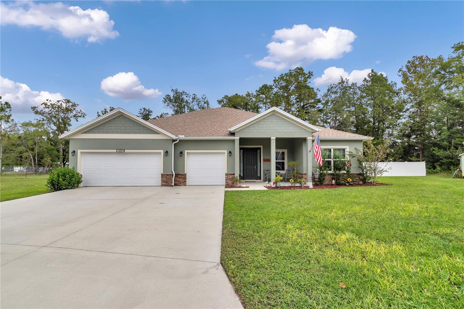 Don't miss this 4-bedroom, 3-bath home with a 3-car garage, ideally situated on an oversized lot. Located on a cul-du-sac close to schools, parks, shopping, and dining, this home combines style and comfort with granite counter tops, designer finishes, and Samsung stainless steel appliances, including washer and dryer. The open floor plan features 9'4" ceilings and 8' doors, creating a bright and spacious feel. The kitchen is designed for both everyday living and entertaining, offering an oversized center island, 42" upper cabinets, walk-in pantry, and granite counter tops. The open living and dining areas flow seamlessly for gatherings of any size. The primary suite serves as a private retreat with a tray ceiling, spa-like shower with marble accents, dual-sink vanity with beauty station, and a spacious walk-in closet. Two secondary bedrooms share a Jack-and-Jill bathroom with dual sinks, while a third guest bedroom and full bath provide flexibility for family or visitors. Additional features include designer tile in all three bathrooms, a bright indoor utility room, Nest Thermostat, and a full irrigation system for added convenience and efficiency. Exterior highlights include a large driveway with ample parking, stacked stone accents, a private covered lanai, and a fully fenced backyard with vinyl fencing. Conveniently located near Ocala amenities with easy access to schools and recreation. Schedule your private showing today.