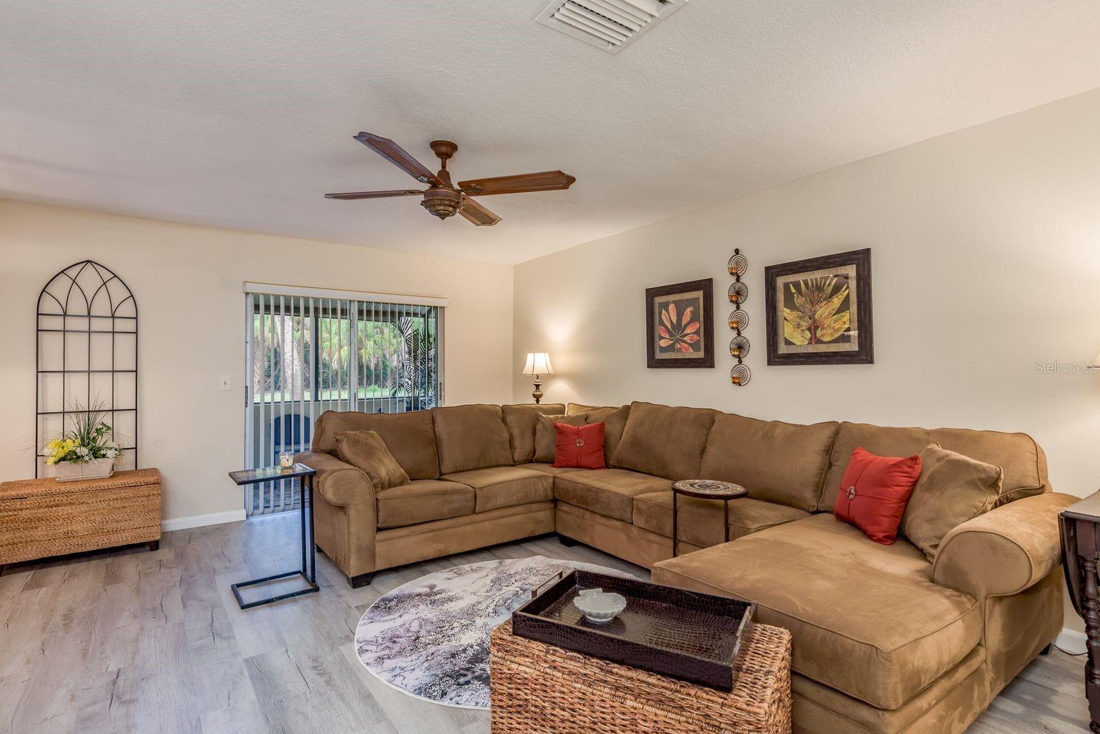 Welcome to New Haven Condos, an inviting 55+ community in the heart of Largo where comfort, convenience, and a relaxed Florida lifestyle meet. This beautifully maintained two-bedroom, two-bath villa exudes warmth with its great, open floor plan, and stylish vinyl plank flooring. The kitchen features wood cabinetry, modern appliances, and a pass-through, creating an effortless flow for entertaining. A spacious primary suite offers a private bath and generous walk in closet space, while the guest bedroom and second full bath provide the perfect retreat for family or visitors. Enjoy peaceful mornings in the enclosed Florida room overlooking a lush greenbelt, or take advantage of resort-style amenities including a community pool, clubhouse, tennis and shuffleboard courts. Small pets are welcome, and the monthly HOA covers cable, internet, exterior and grounds maintenance, water, sewer, and trash. Conveniently located near shopping, dining, medical centers, and Gulf beaches—maintenance-free living awaits in this charming Largo community. Please schedule your private tour today.