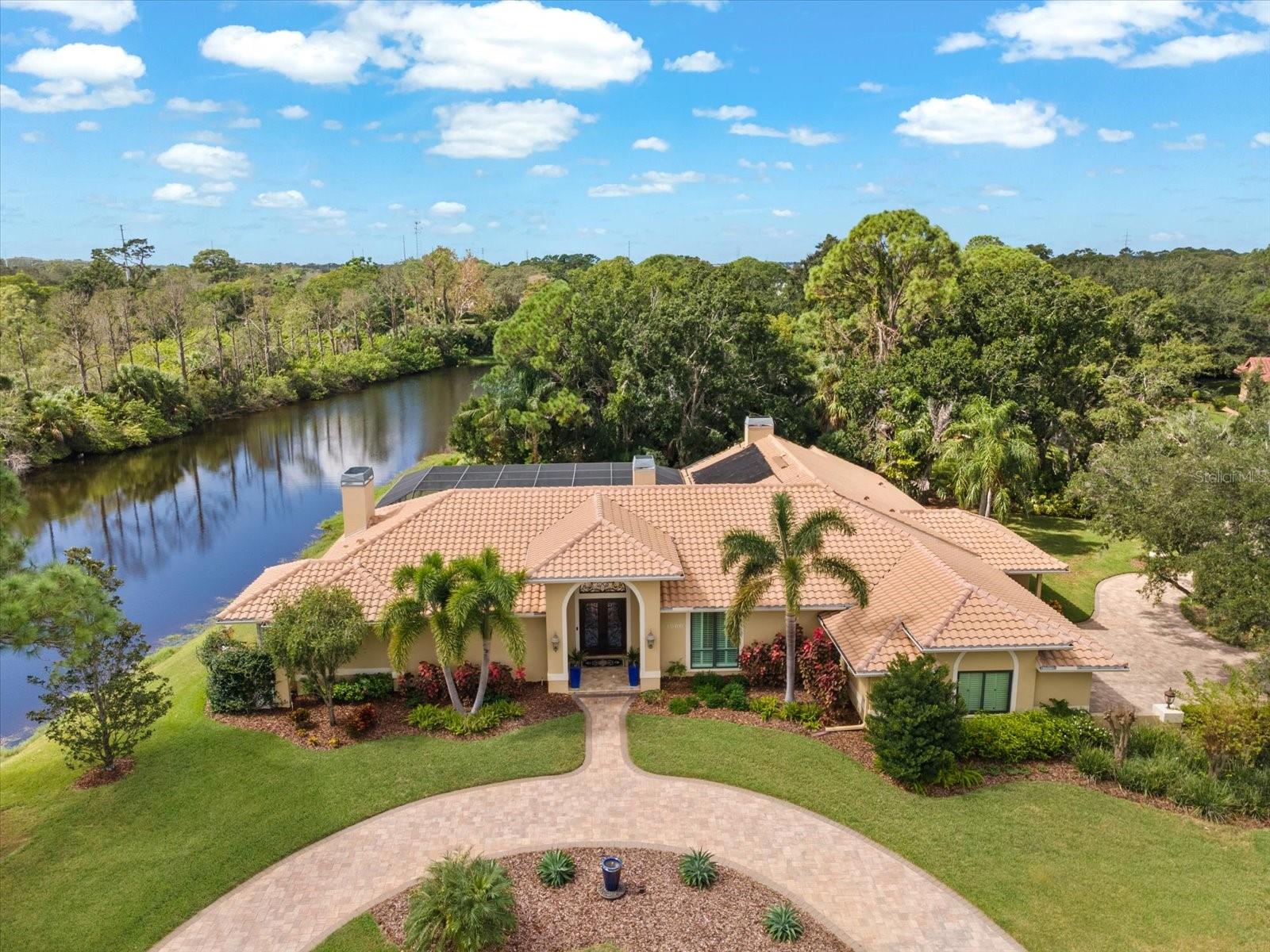 Step into a world where refined design meets relaxed Florida living. This stunning 4-bedroom, 4-bathroom estate rests gracefully on just over an acre in a quiet cul-de-sac within an intimate luxury community. The community residents share a dock and boat ramp on Salt Lake, with Gulf access through the scenic Anclote River. From the moment you arrive, the pavered circular drive and lighted pillars welcome you home to a place that balances elegance, comfort, and possibility.