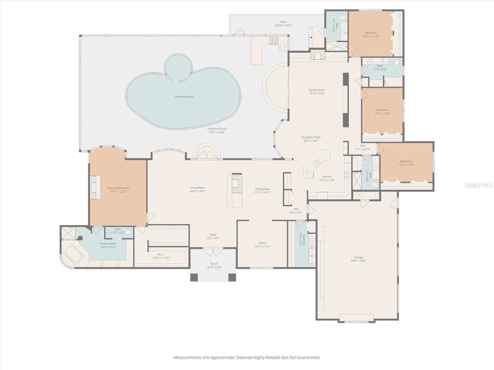 Practical luxury continues with a 3-car oversized garage featuring race-deck flooring, workshop space, and storage closet. The side-entry and circular drives enhance functionality and curb appeal, while the tile roof and custom front door add architectural charm. Over the past several years, thoughtful upgrades have included double-pane impact windows and sliders, an insulated garage door, pool resurfacing and new tile, irrigation and pool pump replacements, and a new pool cage—all ensuring that this home’s beauty is matched by its quality and care.
