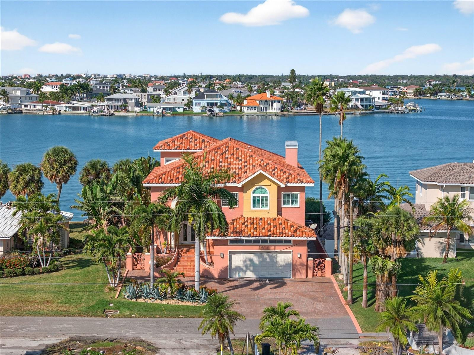 PANORAMIC WATER VIEWS STUNNING RESORT-STYLE POOL AND A SHORT WALK TO THE BEACH define this exceptional Mediterranean-style waterfront estate—an extraordinary opportunity to live the coastal lifestyle you’ve been dreaming of. Custom Built in 2000, this 4-bedroom, 3-full and 2-half bath luxury residence is nestled in the heart of Redington Beach, featuring block construction on all levels, impact windows throughout, accordion