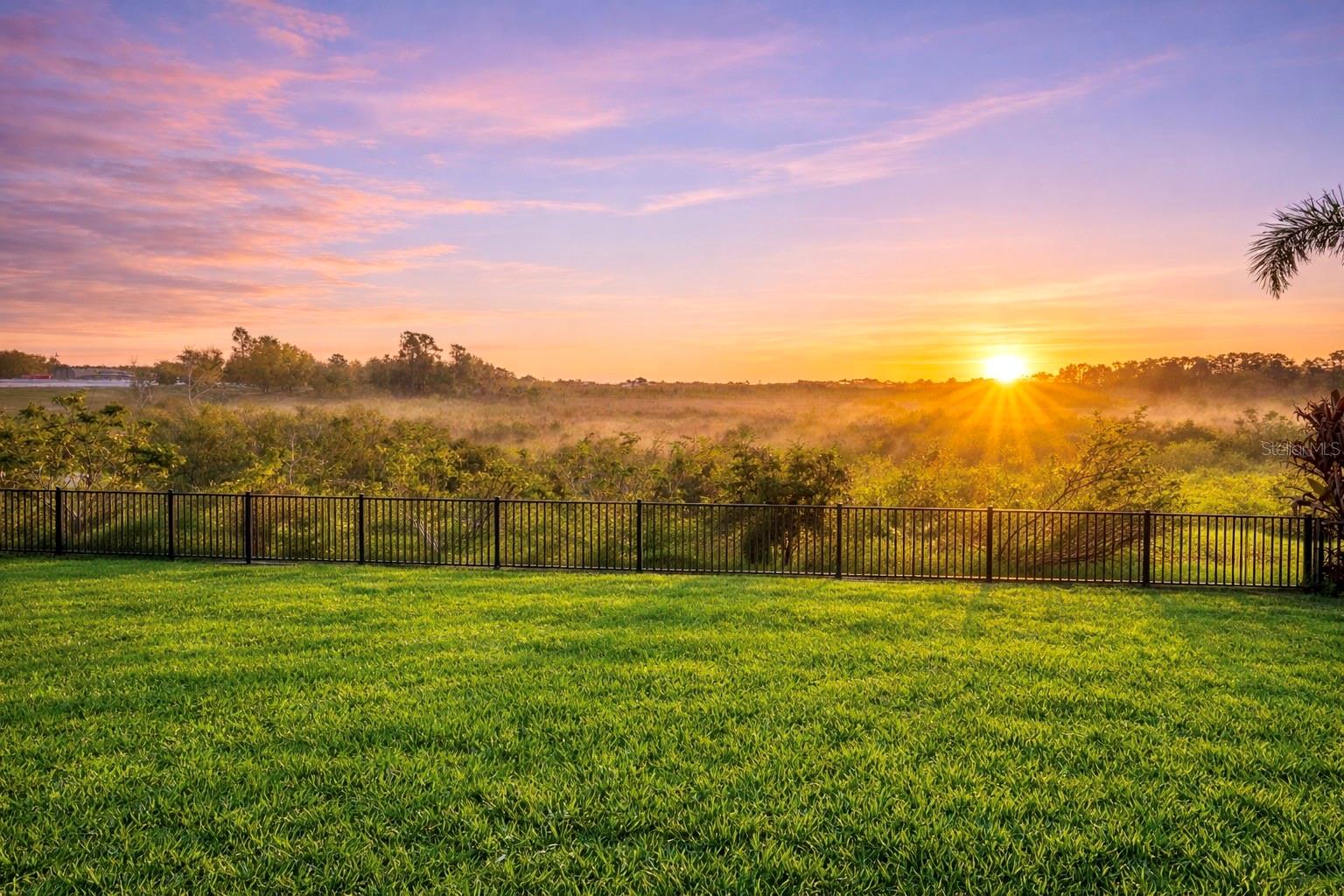 As you move into the main living area, you’re greeted by a stunning two-story family room filled with abundant natural light. The open-concept layout flows seamlessly into a chef-inspired kitchen featuring ceiling-height cabinetry, quartz countertops, stainless steel appliances, wine fridge, and a butler’s pantry alongside a spacious walk-in pantry. A dedicated café area overlooks a serene conservation backdrop, offering uninterrupted sunrise views and a peaceful setting that truly captures the beauty of Florida living.